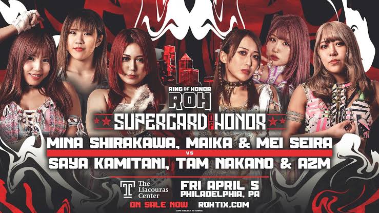 April 9th, [Black Mensore Produce] "The Forty-year-old Masked Man", Shinjuku FACE, Tokyo, 7:00PM JST (LIVE)>So y (EVO) & Chika (EVO) vs Waka Tsukiyama (STARDOM) & Lady C (STARDOM/God's Eye)>Rest of card: https://x.com/fuwakumensore/status/2033117871199683009April 11th, "STARDOM in KORAKUEN 2026 Apr.", Korakuen Hall, Tokyo, 11:30AM JST (LIVE)>Match 0: Akira Kurogane (Mi Vida Loca) & Tabata (CMLL) vs Matoi Hamabe (-) & Anne Kanaya (-)>Starlight Kid (NEO GENESIS) vs Fuwa-chan (-)>Hina & Lady C (God's Eye) vs Xena (-) & Waka Tsukiyama (-)>Suzu Suzuki, Rina Yamashita & Itsuki Aoki (Mi Vida Loca) vs Maki Itoh (Itoh Respect Gundan) & Rian (-) & HANAKO (-)>Hanan, Saya Iida, Bea Priestley & Momo Kohgo (STARS) vs Syuri, Tomoka Inaba, Ranna Yagami & Kiyoka Kotatsu (God's Eye)>Saki Kashima (God's Eye) & Hazuki & Koguma (FWC) vs Maika (-), Mei Seira (NEO GENESIS) & Unagi Sayaka (Freelance)>Rookie of Stardom 2026 Final Match: Ema Maishima (-) vs Kikyo Furusawa (Itoh Respect Gundan)>Natsupoi, Saori Anou, Yuna Mizumori, Aya Sakura & Sayaka Kurara (COSMIC ANGELS) & AZM & Miyu Amasaki (02line) vs Saya Kamitani, Konami, Natsuko Tora, Ruaka, Rina, Azusa Inaba & Fukigen Death (H.A.T.E.)April 12th, [Sendai Girls] "Senjo 20th Anniversary", Korakuen Hall, Tokyo, 11:30AM JST>Hazuki & Koguma (STARDOM/FWC) vs Mika Iwata & Miyuki Takase (Sendai Girls/Red Energy)>Syuri (STARDOM/God's Eye) vs Chihiro Hashimoto (Sendai Girls)>Rest of card: https://sendaigirls.jp/schedule/20260412/Previous >>20209854