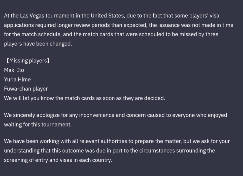 Someone who works at Bushiroad told me that Maki's visa actually isn't the issue. But they are worried about a crazed fan and for her safety they pulled her. Corporate Bushiroad yuck.