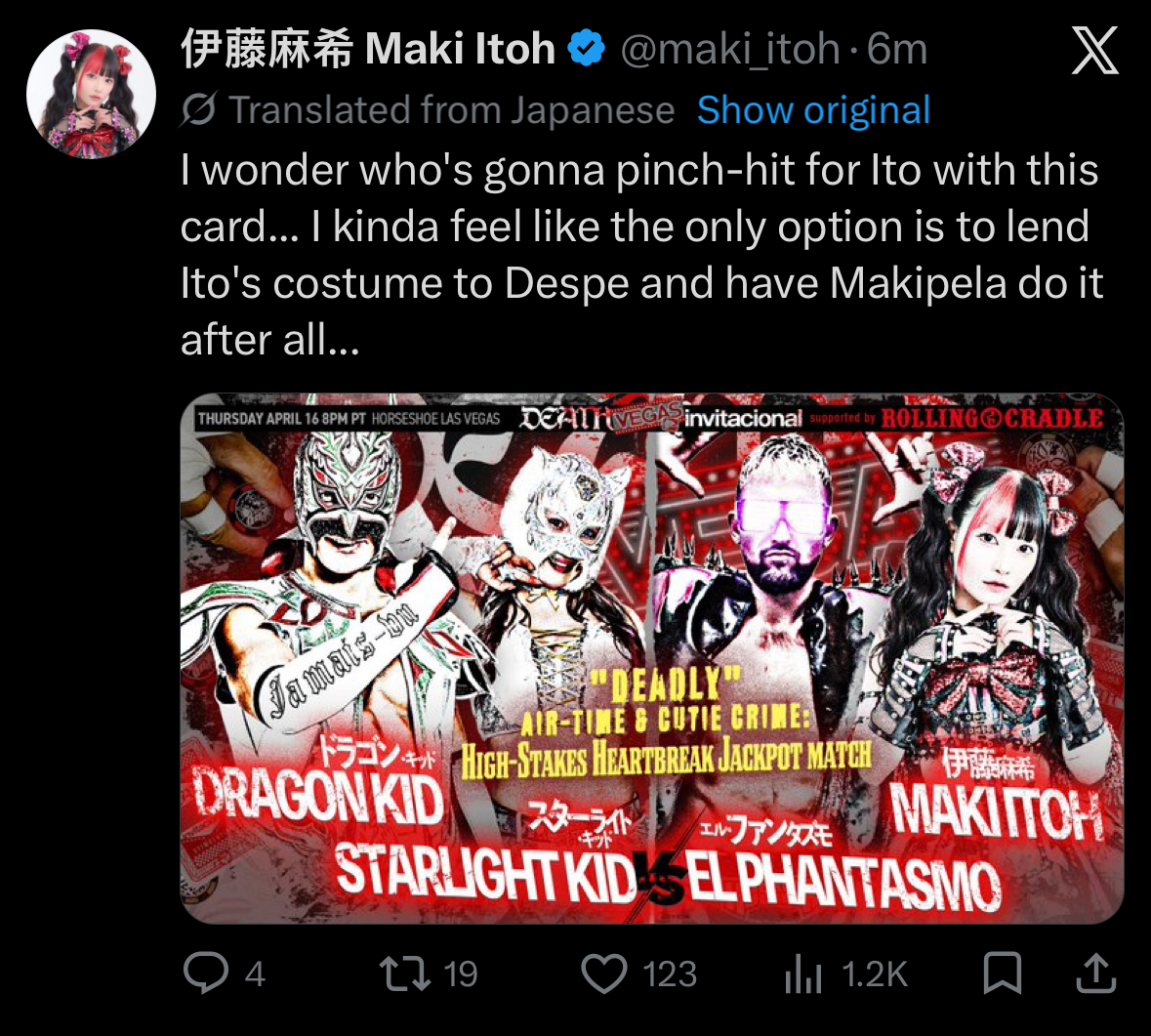 >>20215726It’s too short notice for someone else from Stardom to be added. If someone fills in for them, it will be American indie talent