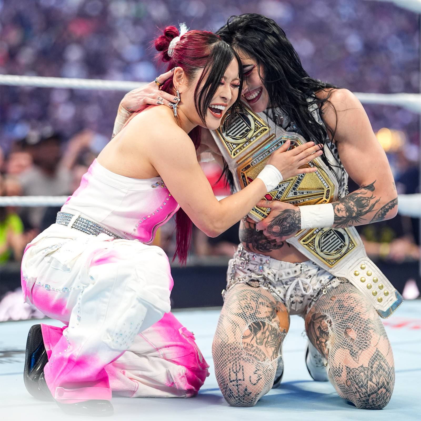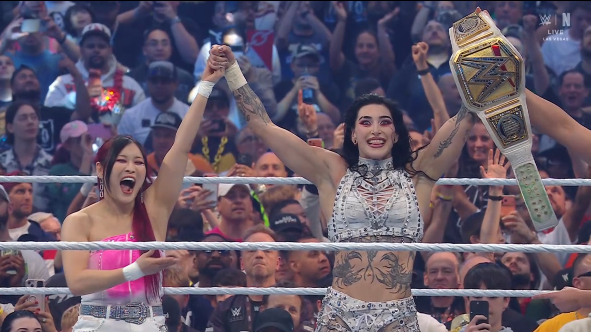 >Mami is back on top at the biggest show of WWE!!!!!!!>Rhea’s success makes me so happy.>Cause we are besties, and we are #RHIYO>The new WWE women’s champion @RheaRipley_WWEhttps://x.com/Iyo_SkyWWE/status/2046054126568808640