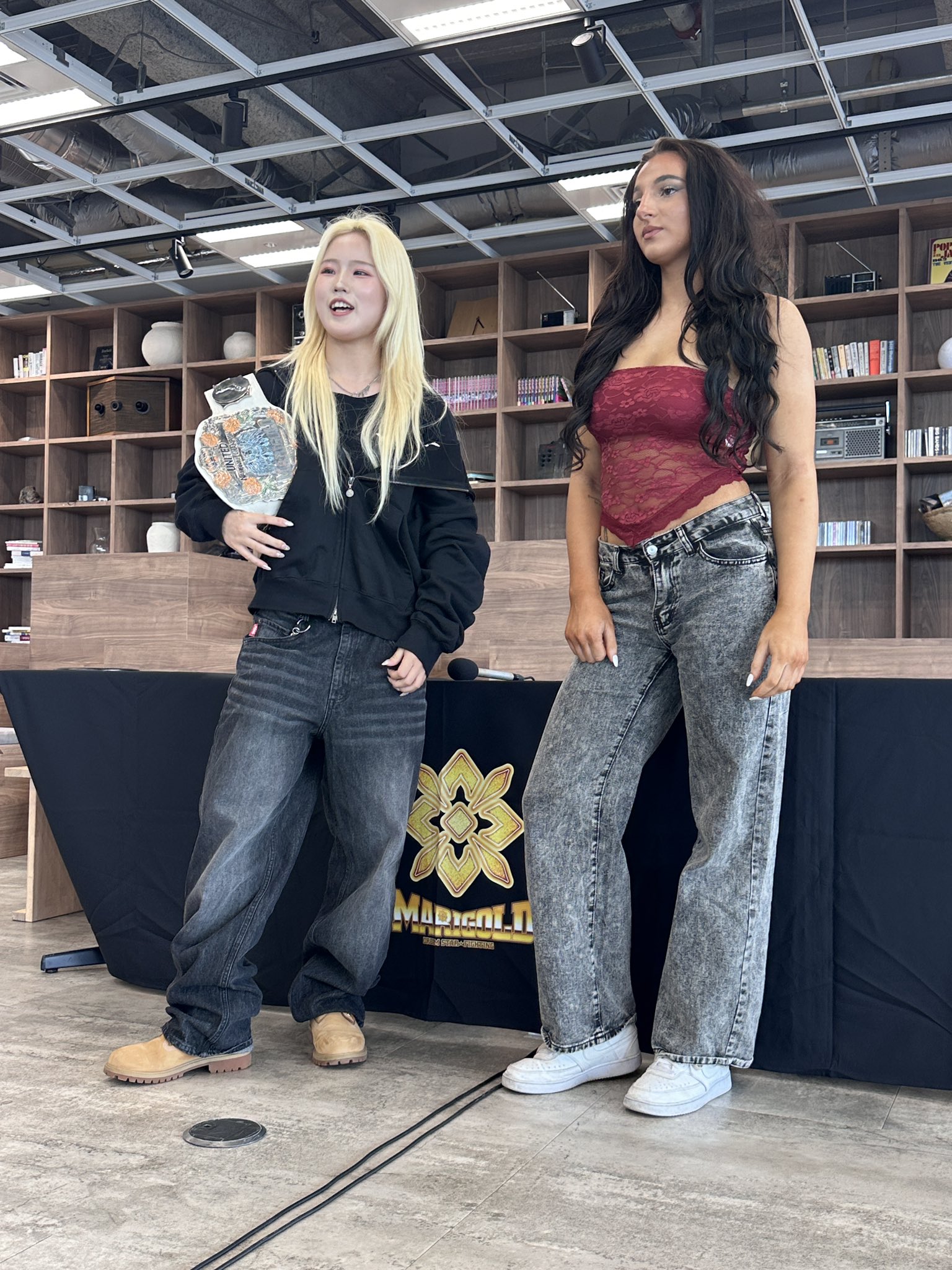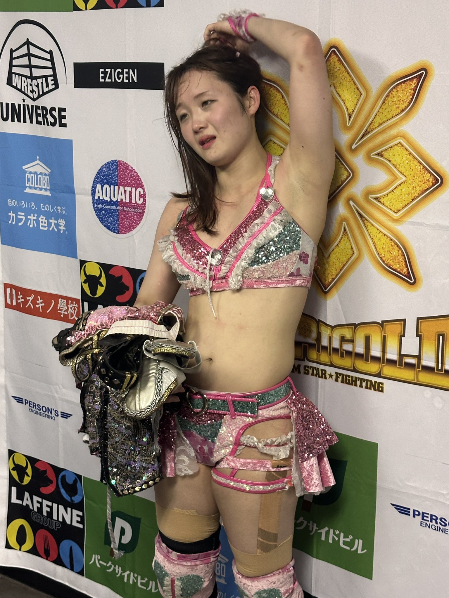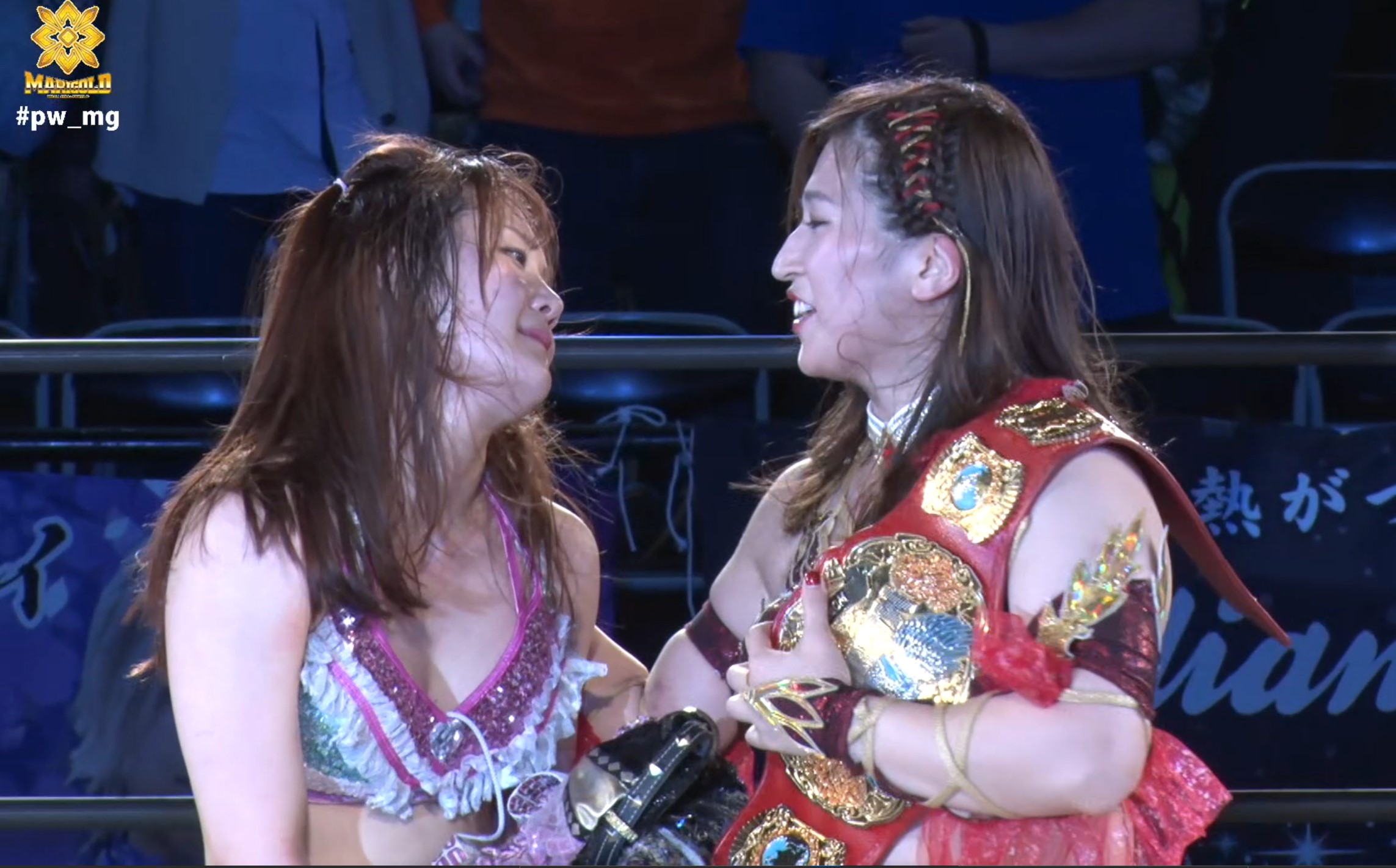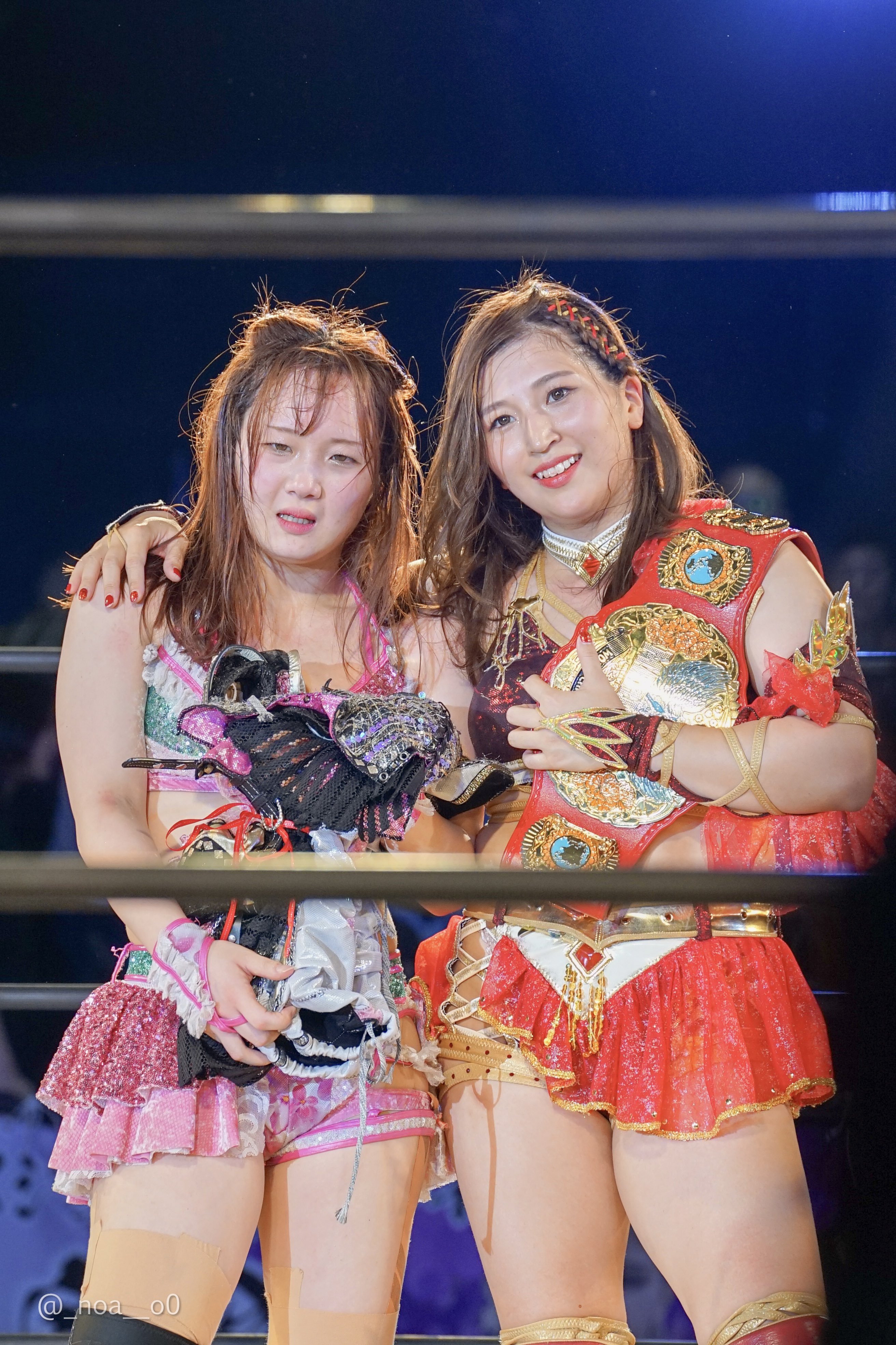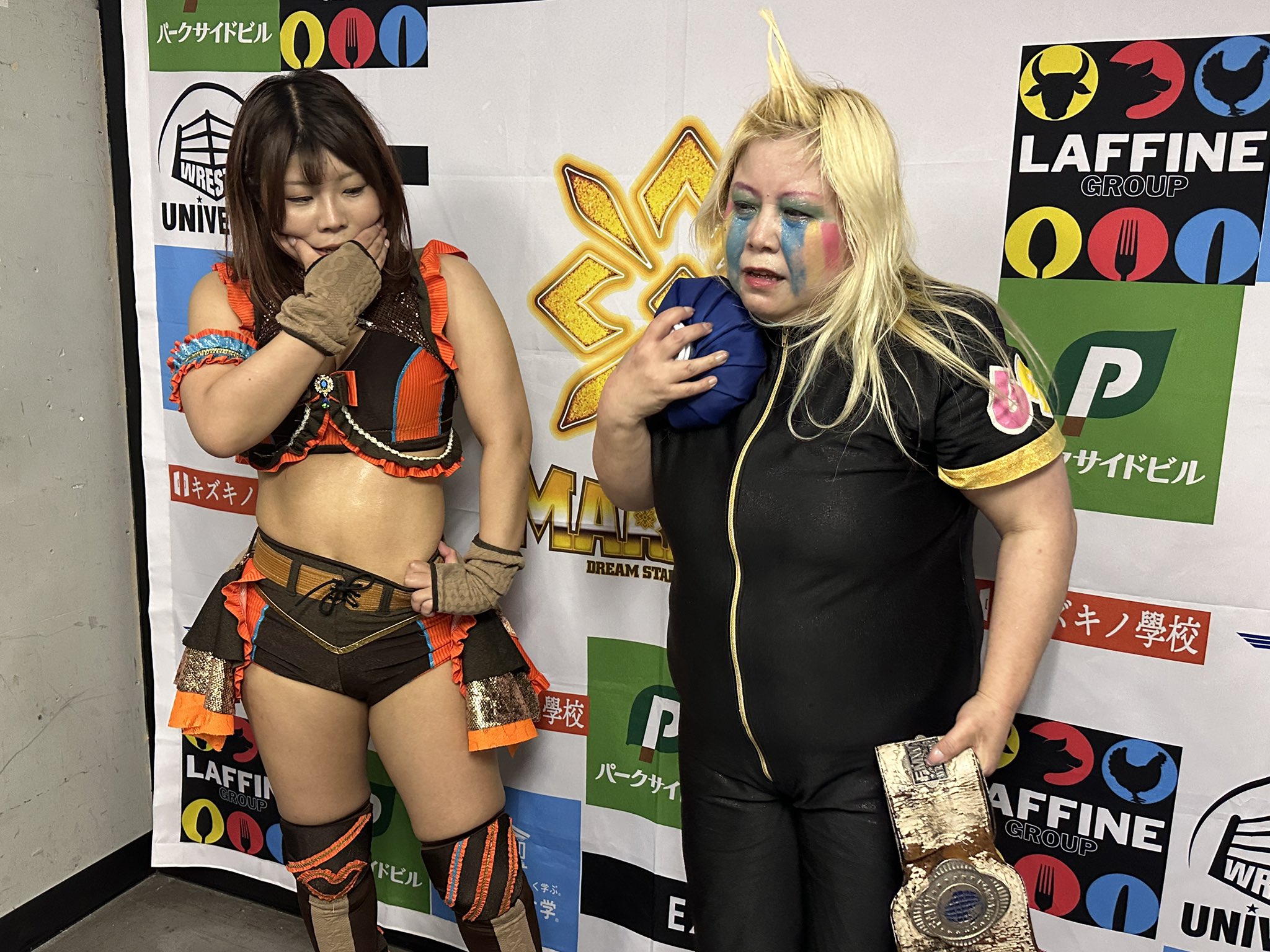 >At Marigold #pw_mg in Shinjuku, the main event was a challenge match between Aono Miku and Minami Komomo. After the match, Aono presented the improving Komomo with a costume she had used in the past. Maybe the tension finally broke, because Komomo said, “I can’t handle the responsibility of the main event~” Aono replied, “She needs to develop a sense of responsibility, so that would be a problem. Everyone, please help raise her together too.”>https://x.com/Hassy0924/status/2044020271003381772