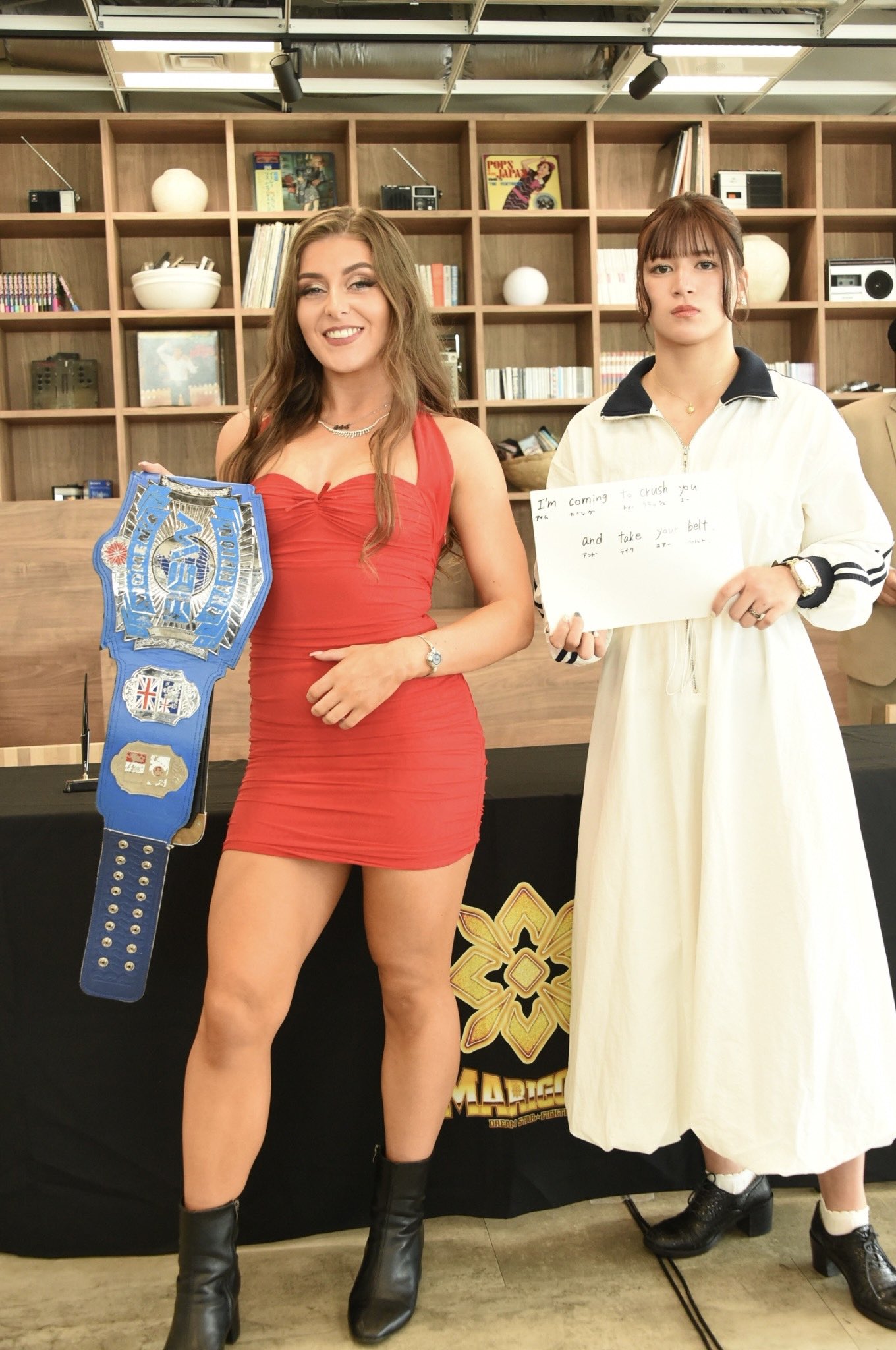 Utami: "There is no fighting within Marigold"https://www.tokyo-sports.co.jp/articles/-/384779>Looking ahead after winning the belt, she said, "Honestly, when I think about how many people in Marigold are capable of fighting for this red belt, there are very few," and proposed the idea of defending the belt in other organizations. She named Takumi Iroha of Marvelous and Mika Iwata of Sendai Girls as potential opponents. Maybe they are a sister company of WWE. Burying their own company.