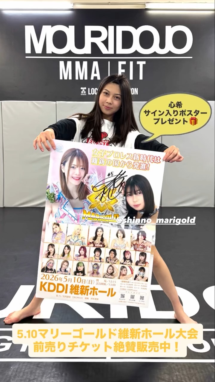 >Today's been a while since Mori Dojo!!>I joined Kick Fit and Cross Training!>Everyone at the dojo is looking forward to the triumphant return and cheering me on, so I'll do my best with all my heart>May 10th (Sun) Mother's Day>KDDI Kishin Hall Yamaguchi Triumphant Event>It's a bit far, but please come see me in droves!>#pw_mg>#心希https://x.com/shinno_marigold/status/2045128499221164139