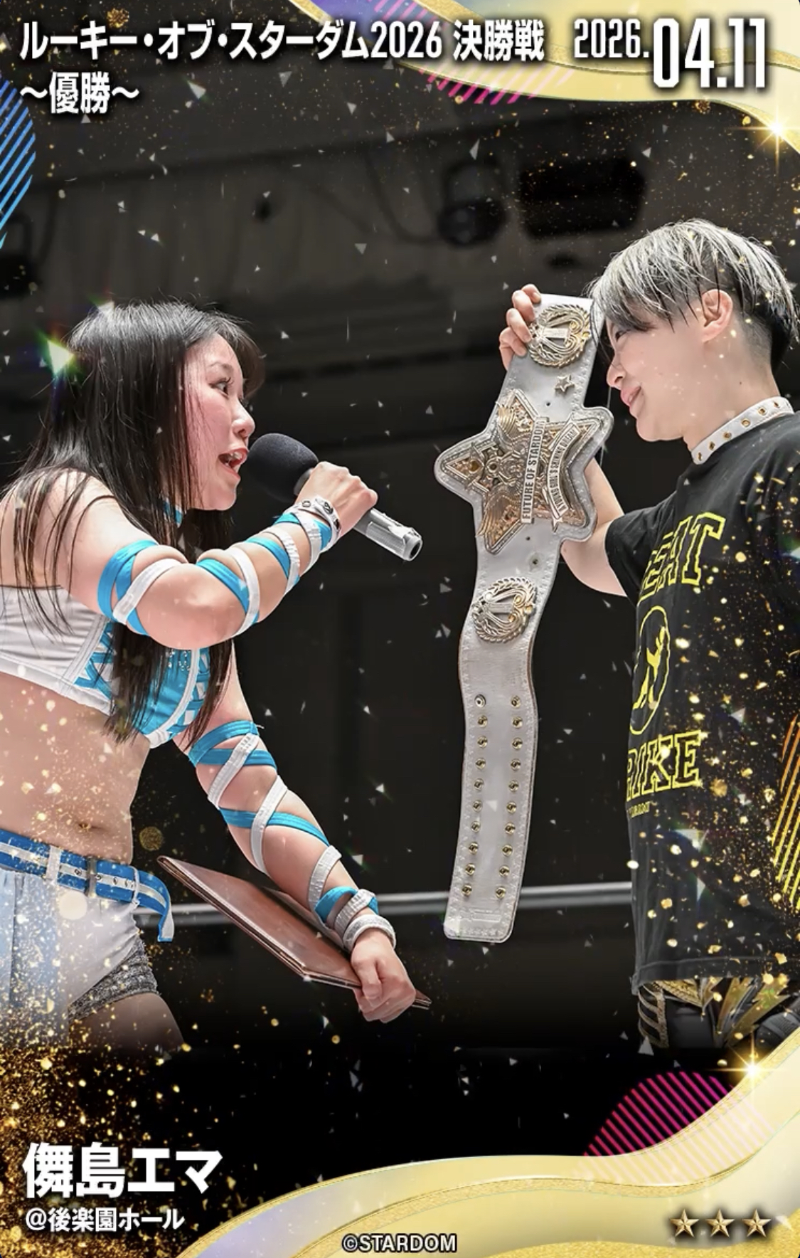 April 17th, "American Dream 2026 in Las Vegas", Pearl Theater at the Palms, Nevada, 3:00PM PDT (LIVE)>Maika (-), Mina Shirakawa )AEW) & HANAKO (-) vs Rina Yamashita & Suzu Suzuki (Mi Vida Loca) & Hazuki (-)>Athena (AEW) vs Rina (H.A.T.E.)>Natsupoi & Aya Sakura (COSMIC ANGELS) vs Brittnie Brooks (Freelance) & SAKI (COLOR'S)>STRONG Women's Championship Match: Alex Windsor (c) (AEW) vs Saya Iida (STARS)>Starlight Kid, AZM & Mei Seira (NEO GENESIS) vs Kris Statlander, Willow Nightingale & Harley Cameron (AEW/Cosmic Babes of Wrath)April 19th [SPARK Joshi] "Lady Luck II", HyperX Arena Las Vegas, Nevada, 12:00PM PDT>Aya Sakura (STARDOM/COSMIC ANGELS) vs Vipress (Freelance) vs Brittany Blake (Freelance)>Rina (H.A.T.E.) & Alexis Lee (SPW) ns AZM (STARDOM/NEO GENESIS) & Aleah James (Freelance)>Natsupoi (STARDOM/COSMIC ANGELS) vs Starlight Kid (STARDOM/NEO GENESIS) vs Dani Mo (JCW) vs Maya World (AEW)>SPARK Joshi World Championship: Hazuki (c) (STARDOM) vs Jada Stone (TNA)Previous: >>20245357