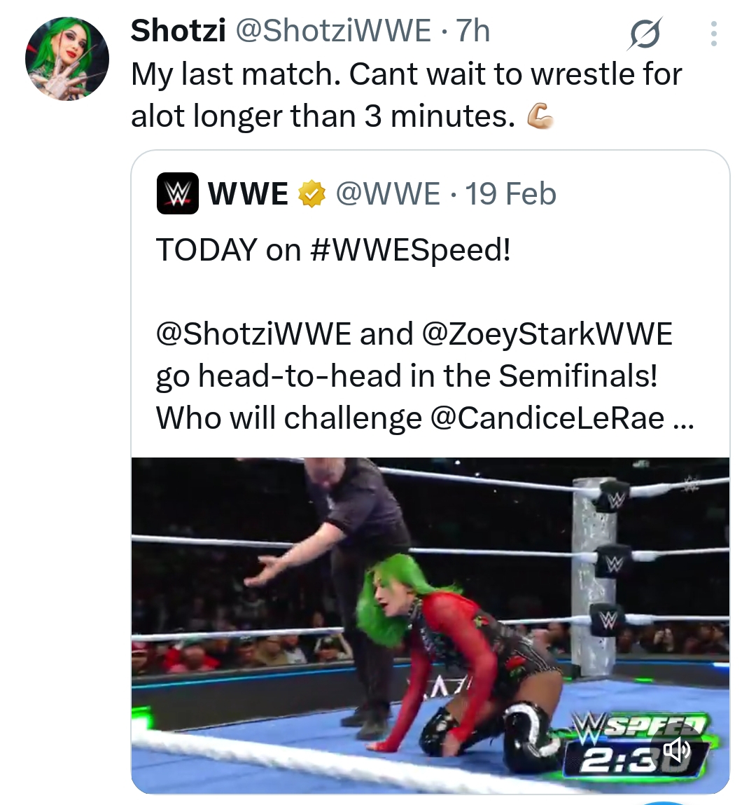 She was one of the things that actually made WWE a watchable product when they released her and Shotzi last year it was when I really started pulling away from WWE and getting more into Indie stuff