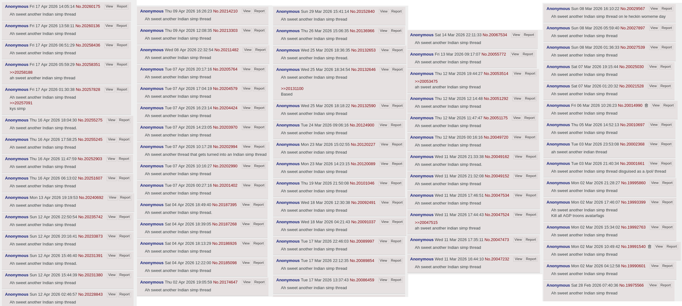 >>20260404Dead internet theory except it's just horny indians