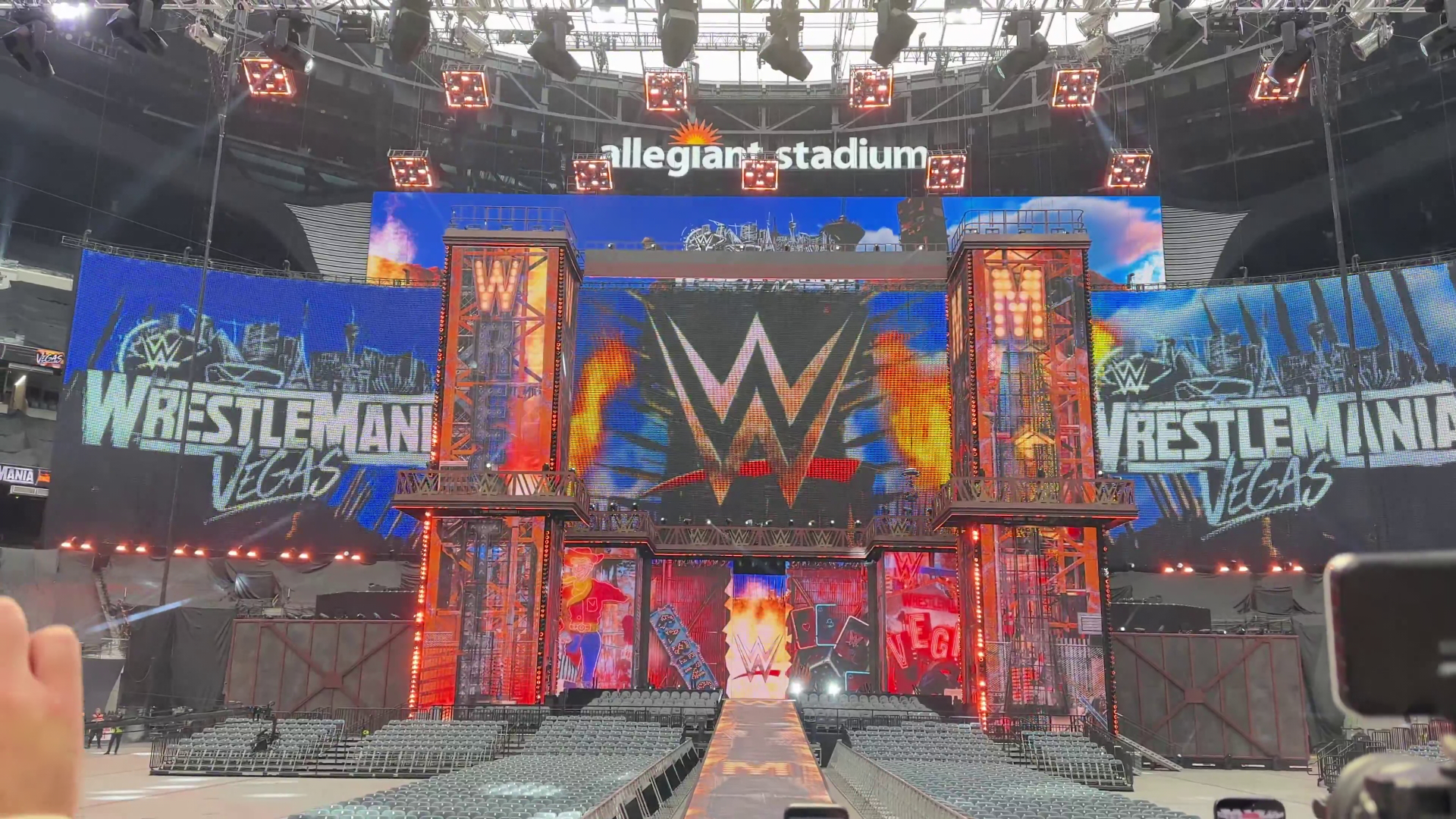 >>20260346Seems like they'll just make sets made out of square LED panels, just like last year, no custom structures anymore. Sad but it could be worse. For the audience looks like those two pillars are going to block a lot of the view for the entrances.It also looks like an over the top full LED version of the WM17 set