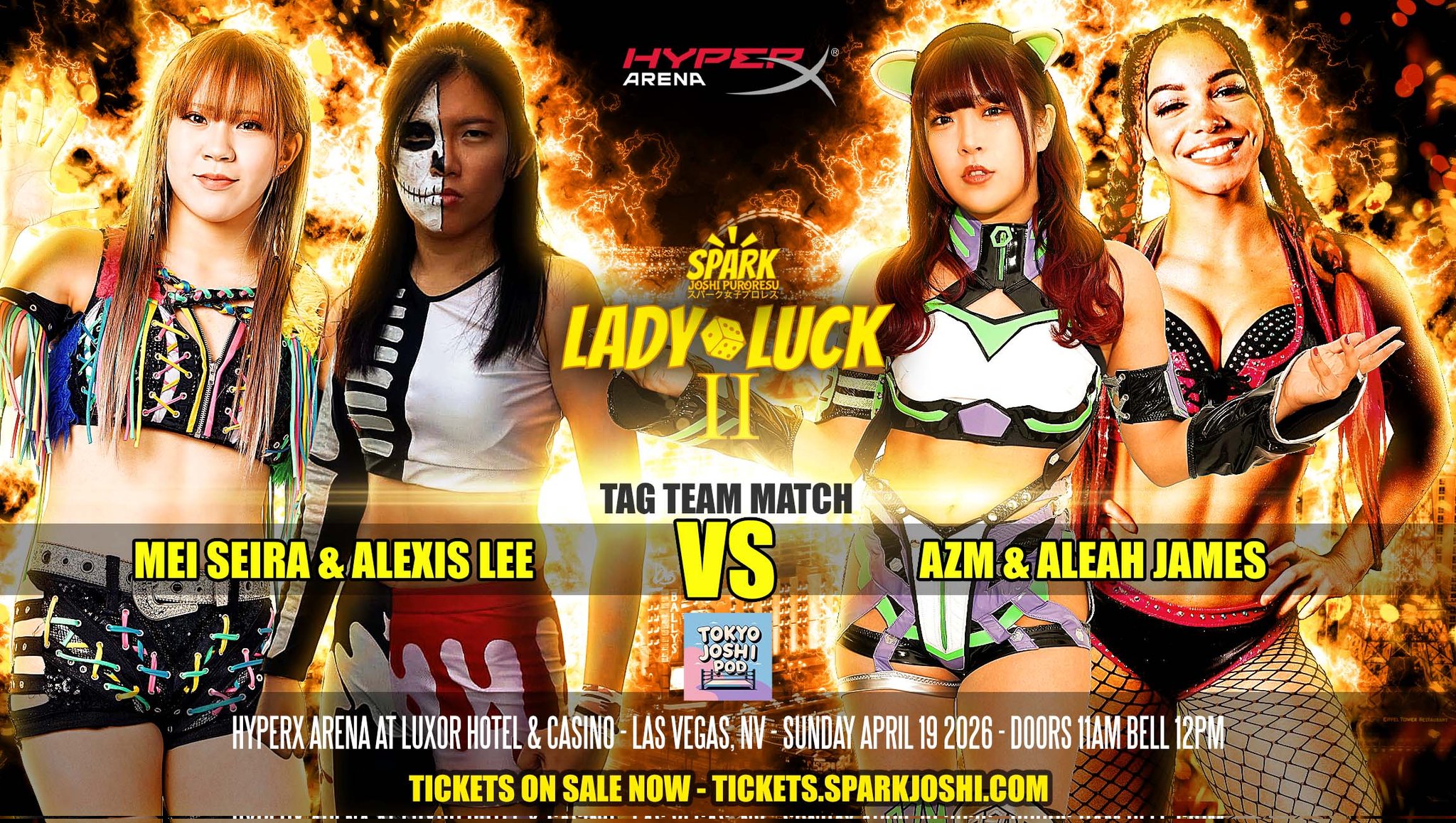 April 19th [SPARK Joshi] "Lady Luck II", HyperX Arena Las Vegas, Nevada, 12:00PM PDT>Aya Sakura (STARDOM/COSMIC ANGELS) vs Vipress (Freelance) vs Brittany Blake (Freelance)>Rina (H.A.T.E.) & Alexis Lee (SPW) ns AZM (STARDOM/NEO GENESIS) & Aleah James (Freelance)>Natsupoi (STARDOM/COSMIC ANGELS) vs Starlight Kid (STARDOM/NEO GENESIS) vs Dani Mo (JCW) vs Maya World (AEW)>SPARK Joshi World Championship: Hazuki (c) (STARDOM) vs Jada Stone (TNA)>Rest of card: https://sparkjoshi.com/wrestling/spark-news-ladyluck2-las-vegas-mania-week-show-cardPrevious >>20257294