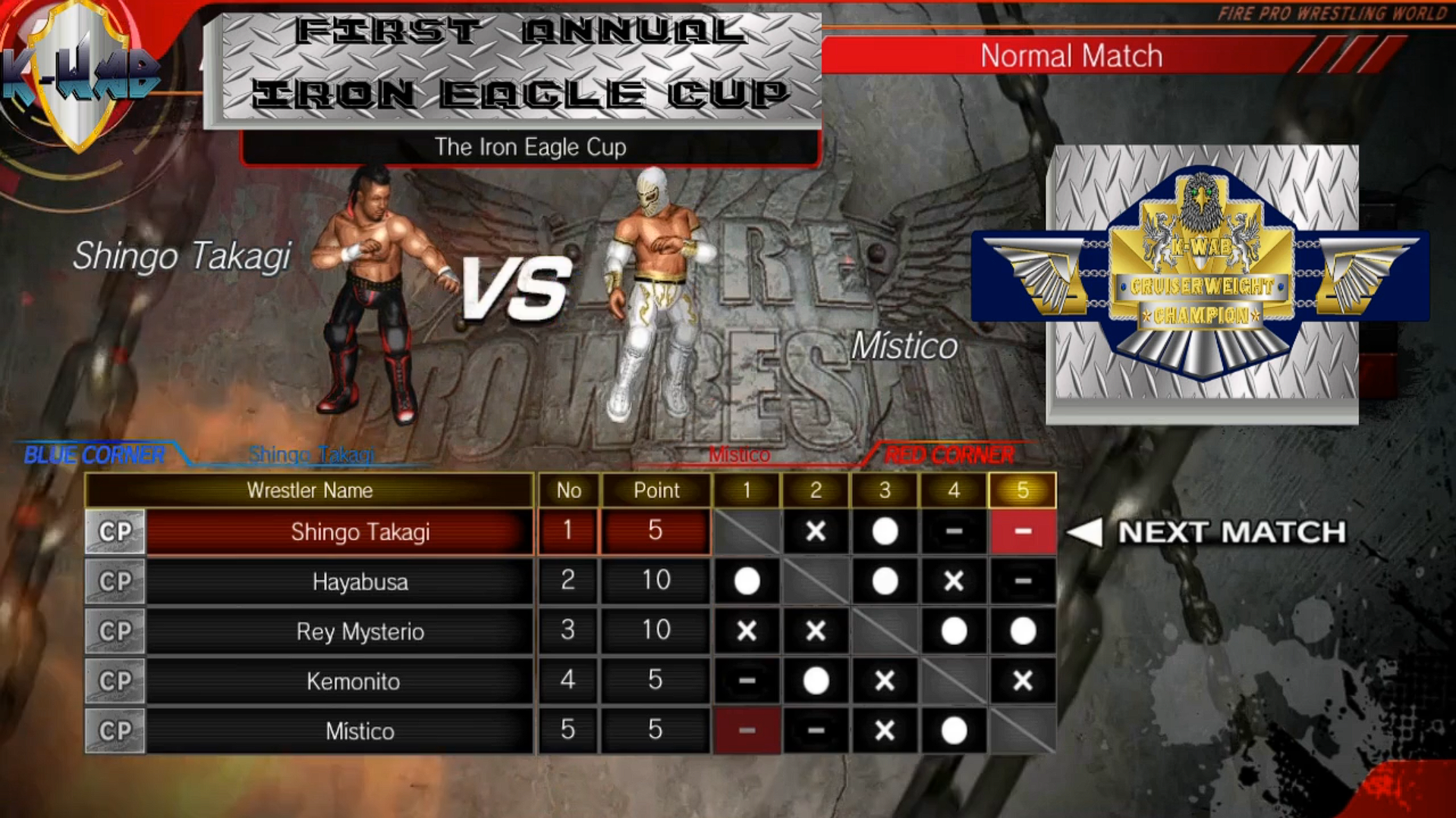 >Mistico Vs Shingo Takagi in another Iron Eagle Cup Tournament match