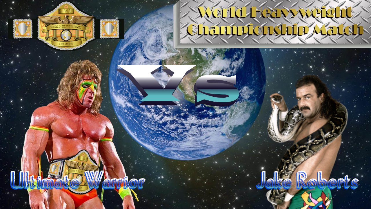 Tonight, we see a clash between two old enemies as The Ultimate Warrior defends the K-WAB World Heavyweight Championship against Jake "The Snake" Roberts! There's no way that Jake can hope to match Warrior in the power department, but he's also clearly the more intelligent and wily of the two. Who will walk out of here tonight with the gold? The warrior or the snake man?