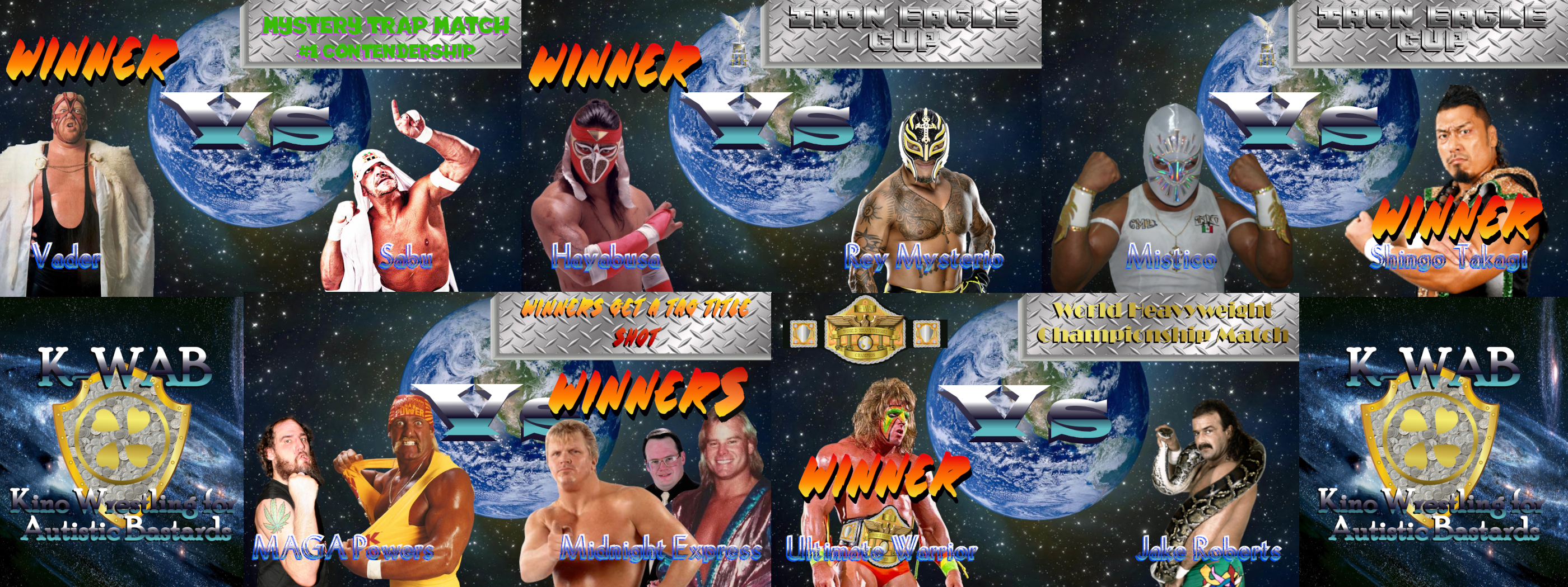 Hulk Hogan will face the winner of tonight's opening match, and the winner of that match is going to KINOMANIA to challenge for the World Heavyweight Championship! We also saw Danhausen and LA Knight taking a little trip to Transylvania, and a chance meeting between Cactus Jack and The MAGA Butcher. As a result of that meeting, these two will meet at KINOMANIA and fight in some kind of crazy deathmatch, with the K-WAB King of the Deathmatch crown on the line! There was also a somewhat disturbing scene involving David Benoit and The Booty Man.