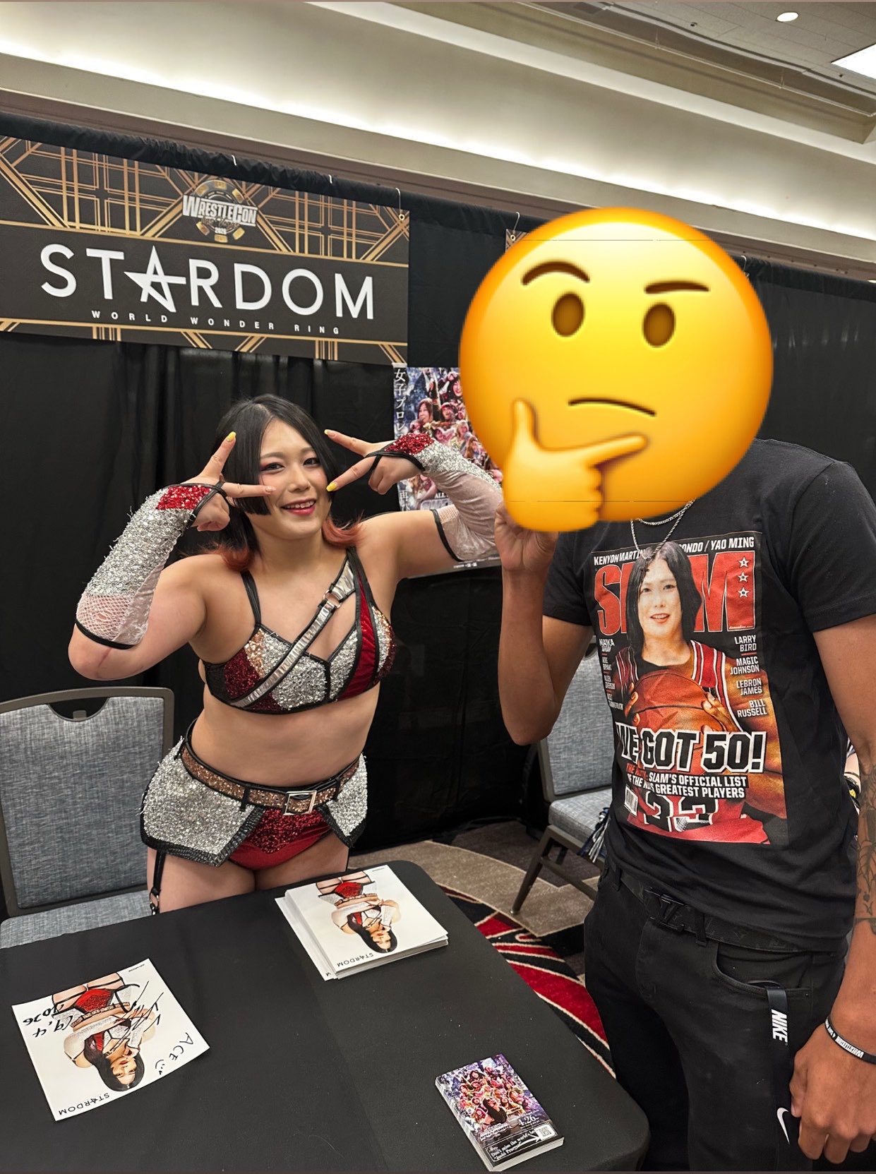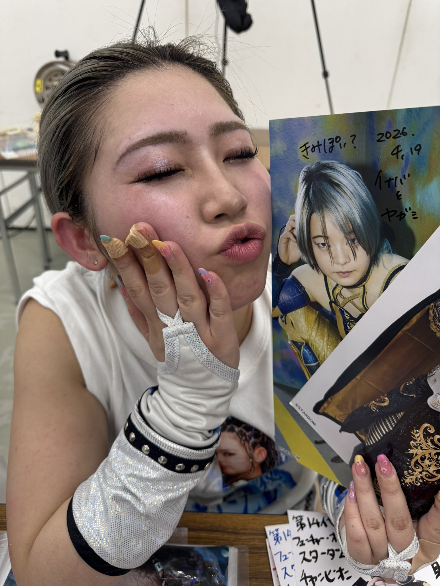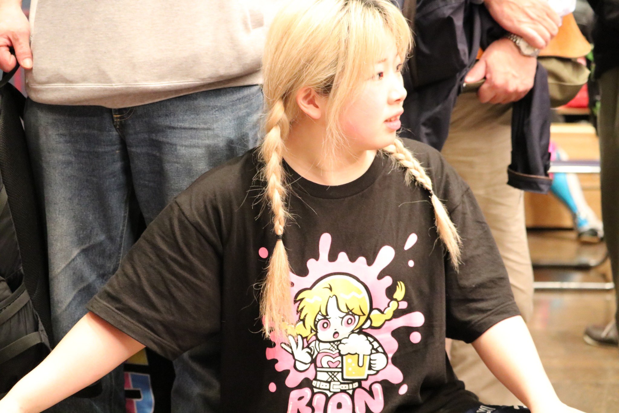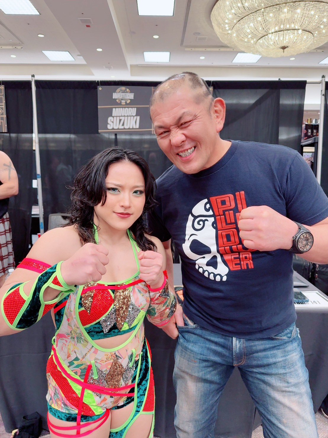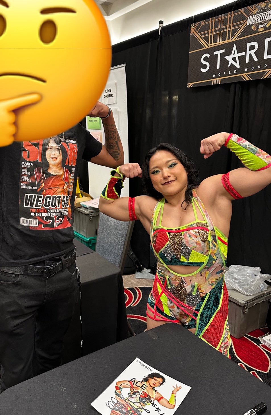I met Hazuki at the meet and greet and she looked great and seemed happy, especially after a gave her a little gift. So no signs of a boo-boo face for losing the title today unless she's hiding it well. And i was a bit taken aback wheni was asked my name so it could be checked off the list and it was Kidd Bandit doing it.