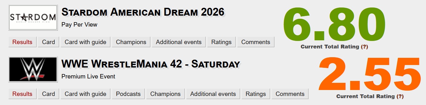 >>20282497April 19th, [JTO] "Hiroshima Tournament", Hiroshima Industrial Hall, Hiroshima, 5:00PM JST>Tomoka Inaba (JTO) & Ranna Yagami (STARDOM) [God's Eye] vs MIRAI (Michinoku Pro) & Aoi (JTO)>Rest of card: https://prowrestlingjto.com/260419s/April 19th [SPARK Joshi] "Lady Luck II", HyperX Arena Las Vegas, Nevada, 12:00PM PDT>Aya Sakura (STARDOM/COSMIC ANGELS) vs Vipress (Freelance) vs Brittany Blake (Freelance)>Mei Seira (STARDOM/NEO GENESIS) & Alexis Lee (SPW) vs AZM (STARDOM/NEO GENESIS) & Aleah James (Freelance)>Natsupoi (STARDOM/COSMIC ANGELS) vs Starlight Kid (STARDOM/NEO GENESIS) vs Dani Mo (JCW) vs Maya World (AEW)>SPARK Joshi World Championship: Hazuki (c) (STARDOM) vs Jada Stone (TNA)>Rest of card: https://sparkjoshi.com/wrestling/spark-news-ladyluck2-las-vegas-mania-week-show-cardApril 21st, [Gokigen Pro] "Saki Kashima Happy Farewell Party", Shinkiba 1st Ring, Tokyo, 7:00PM JST>Goodbye Saki Kashima! Happy Royal Rumble: Saki Kashima (STARDOM/God's Eye), Kaori Yoneyama (Gokigen Pro), Tsubasa Kuragaki (Freelance), Kuishinbo Kamen (Freelance), Hikaru Sato (Freelance), Makoto (Freelance), Trans Am*Hiroshi (BASARA), SAKI COLOR'S), Kakeru Sekiguchi (Freelance), Yuki Mashiro (Freelance), Chie Ozora (PURE-J), Matsuzawa-san (Freelance), Ranna Yagami (STARDOM/God's Eye), Rian (STARDOM), Matoi Hamabe (STARDOM), Anne Kanaya (STARDOM), X (announced on the day) and othersApril 23rd, "STARDOM NIGHTER in KORAKUEN 2026 Apr.2", Korakuen Hall, Tokyo, 6:30PM JST (LIVE)>Syuri & Saki Kashima (Anecon) vs Momo Watanabe (H.A.T.E.) & AZM (NEO GENESIS)>Rest of card tba: https://wwr-stardom.com/event/20260423_korakuen/