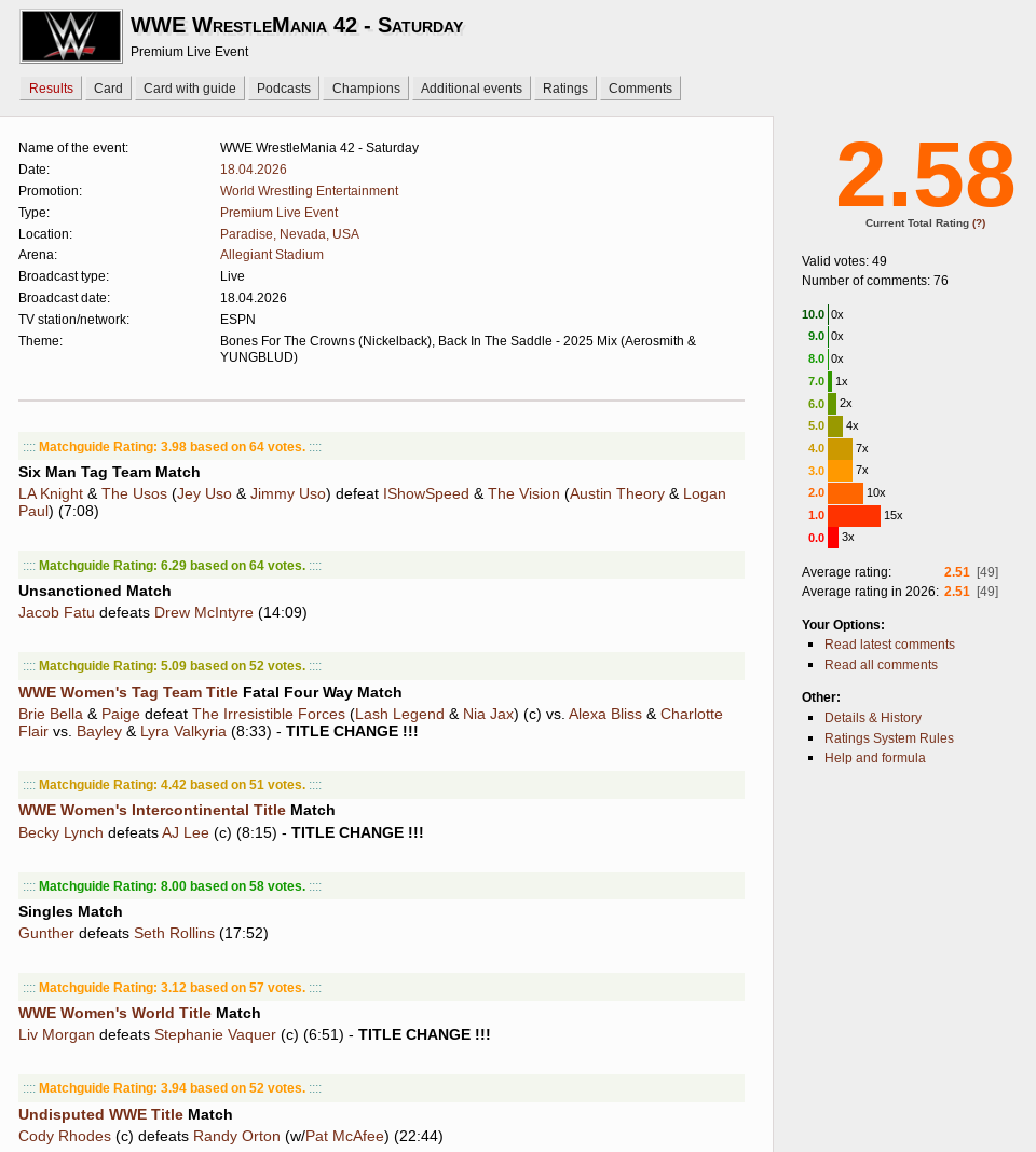 >>20282592Reminder that the first two matches were preshow and do not count for the mania card.This is the grimmest wrestlemania to have ever taken place