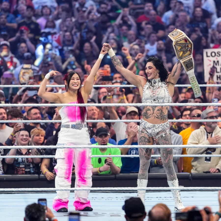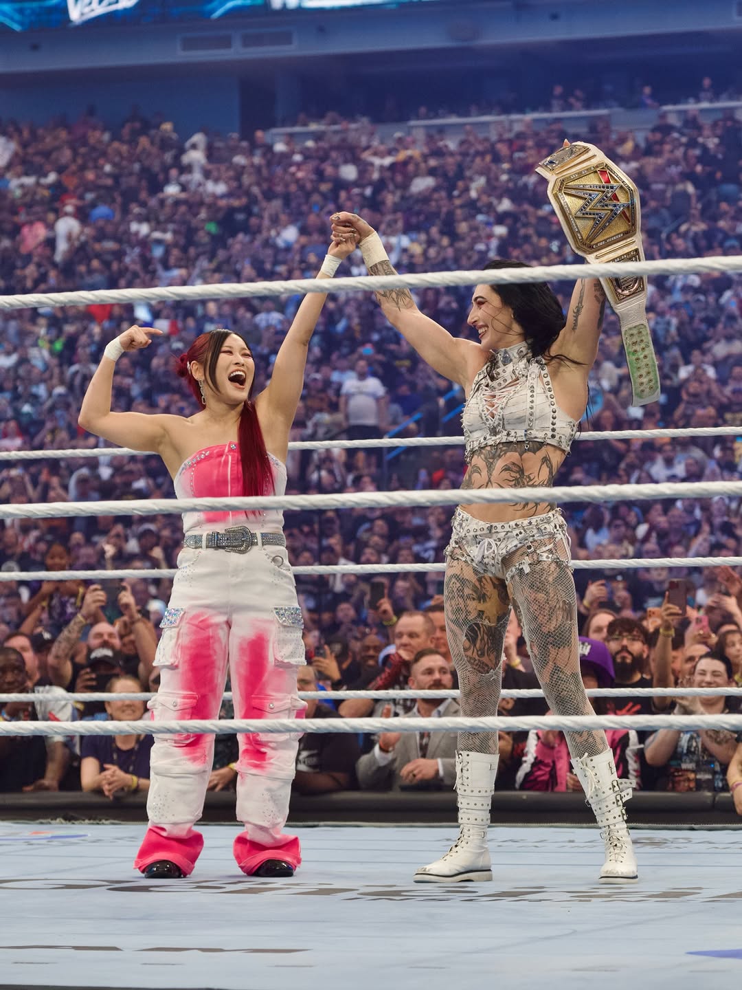 >Mami is back on top at the biggest show of WWE!!!!!!!>Rhea’s success makes me so happy.>Cause we are besties, and we are #RHIYO>The new WWE women’s champion @RheaRipley_WWEhttps://x.com/Iyo_SkyWWE/status/2046054126568808640