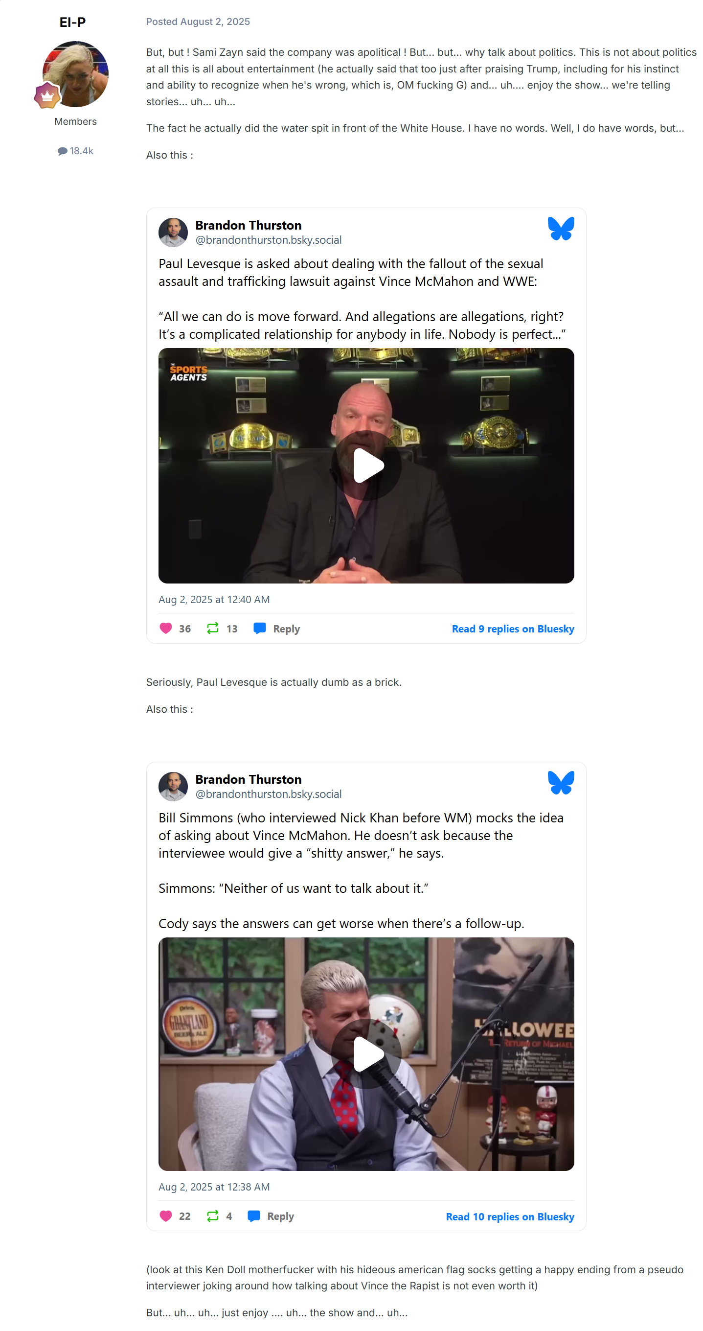pwo used to ge a good site for talking about wrestling before their greatest wrestler ever project which they took way too fucking seriously now it's just a few mentally ill leftists talking to themselves