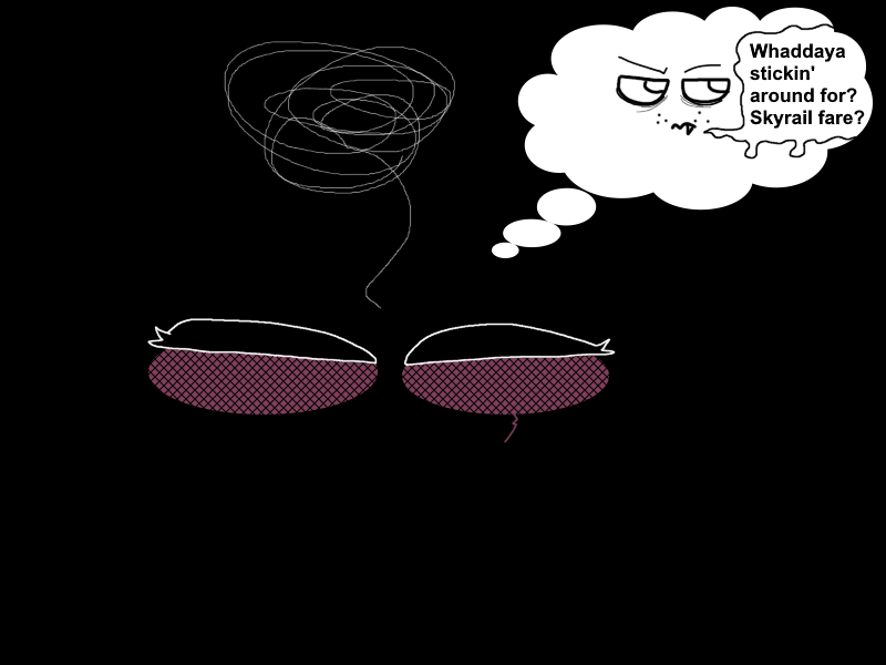>>6283838“Lotsa mages up North, Ant. Stay on your toes.”“She ain’t kidding, Rook!” Smirks Volka! “Might as well be the mage capital of Zoral, really! Spooky!”Think her dad would know a thing or two about Umberal? The Skog answers with a derisive scoff that puts a smile on Rezzie’s face!“Hells, don’t get him STARTED!” Volka groans with a grin! “It’s getting him ta’ shut up about it that’s the real trick… man hates it up here.”Why? The simple question seems to throw the poor Skog for a loop.“W-well, um…” She mutters, her tail flicking the floor beneath her, “I think he has some history with the academy. And the government. And the Spicys. And the Rich. And the Middle-Class. And the Poor. And most of the mages living here.” She blinks. “... You met dad. He can be, uh… hard to get along with?”Yea, you nod as your mind wanders back to the stunted, even by Durher terms, old man you met when you first arrived in Crossroads, you uh… you remember.“Seems easy to me!” Snorts Rezalith! “He can’t be all bad if he hates everything I hate!”You haven’t met half of those things Volka mentioned, though.“And I don’t INTEND to!” The devil concludes by crossing her arms! That settles that, you guess.“Anyways,” Sighs the Spinner as her tail flops against your side, “Market’s open during the day now too. Oh, and it’s true: you can find almost anything there.”Anything?“Probably!” The Durher replies with a bewildered look on her face! “Ain’t gonna be cheap though. Nothing in Umberal is.”“Tch. Money.” Rezzie hisses through clenched teeth. “Why bother when we intend to burn this place to ashe-”NNNGH! IX-NAY ON THE ALKING-TAY ABOUT BURNING THINGS IN FRONT OF THE OLOGRAM…HAY!“... Do you try to make me want to hit you?””Can I be of any other service? If not, I must politely ask you to disembark soon.”Is there?>Tell me about another place!>Just take us out of the monorail, please!>Any news bulletins we should know about?>Can I get another snack or something?>Teleport us somewhere, please!>Mind blasting us with those PHEROMONES one last time?>Nope! We’ll leave!>Write-In!