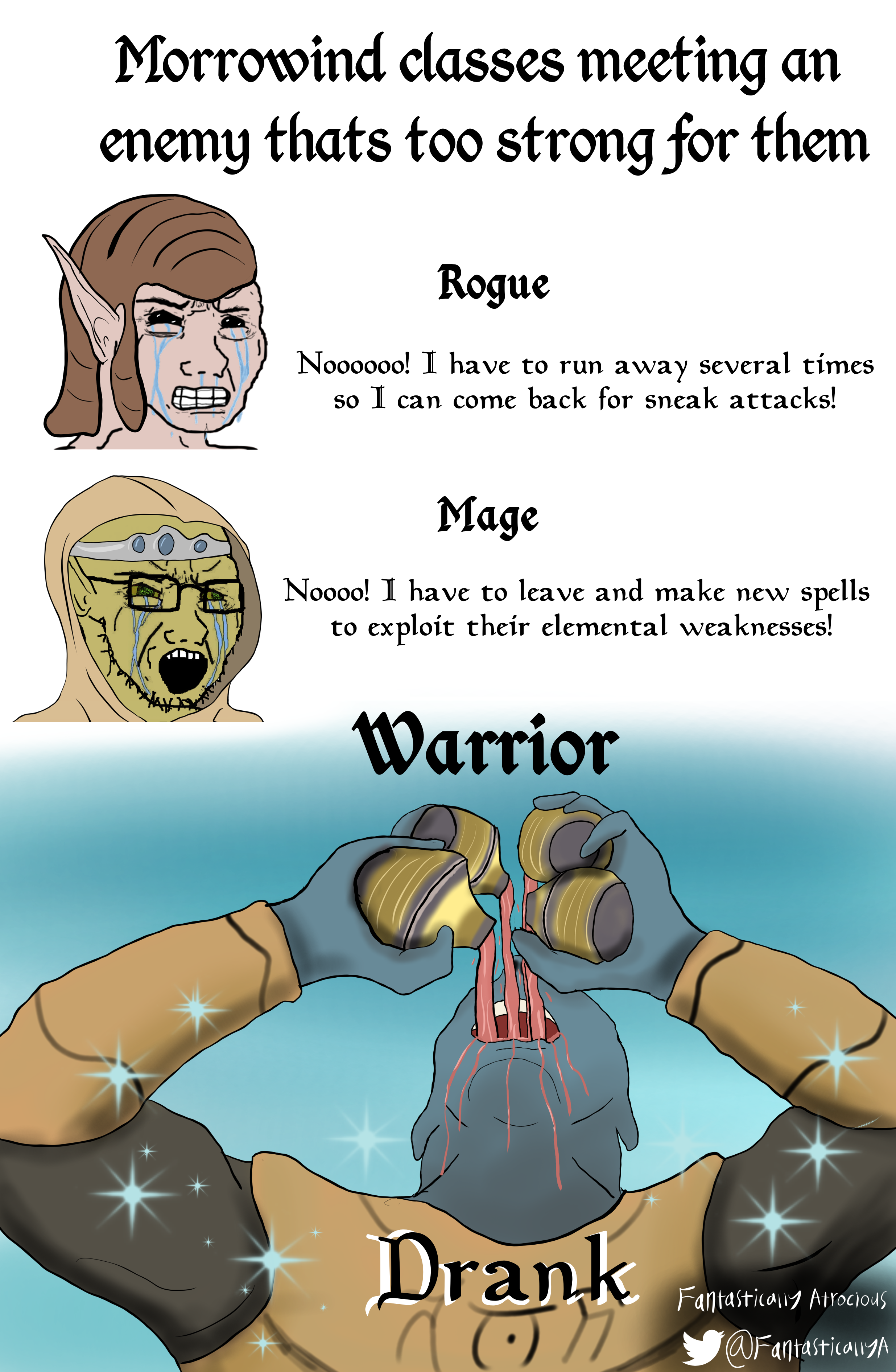 >>6309618Calling for>Drink both potions>KILLAlso lmao at the meme.Roll 2d100. First DC: 40, second DC: 50, lowered to 35 if you succeed on the first roll.(it's basically a roll for if you manage to chug the potions while the beast is recovering, and then for the actual combat)