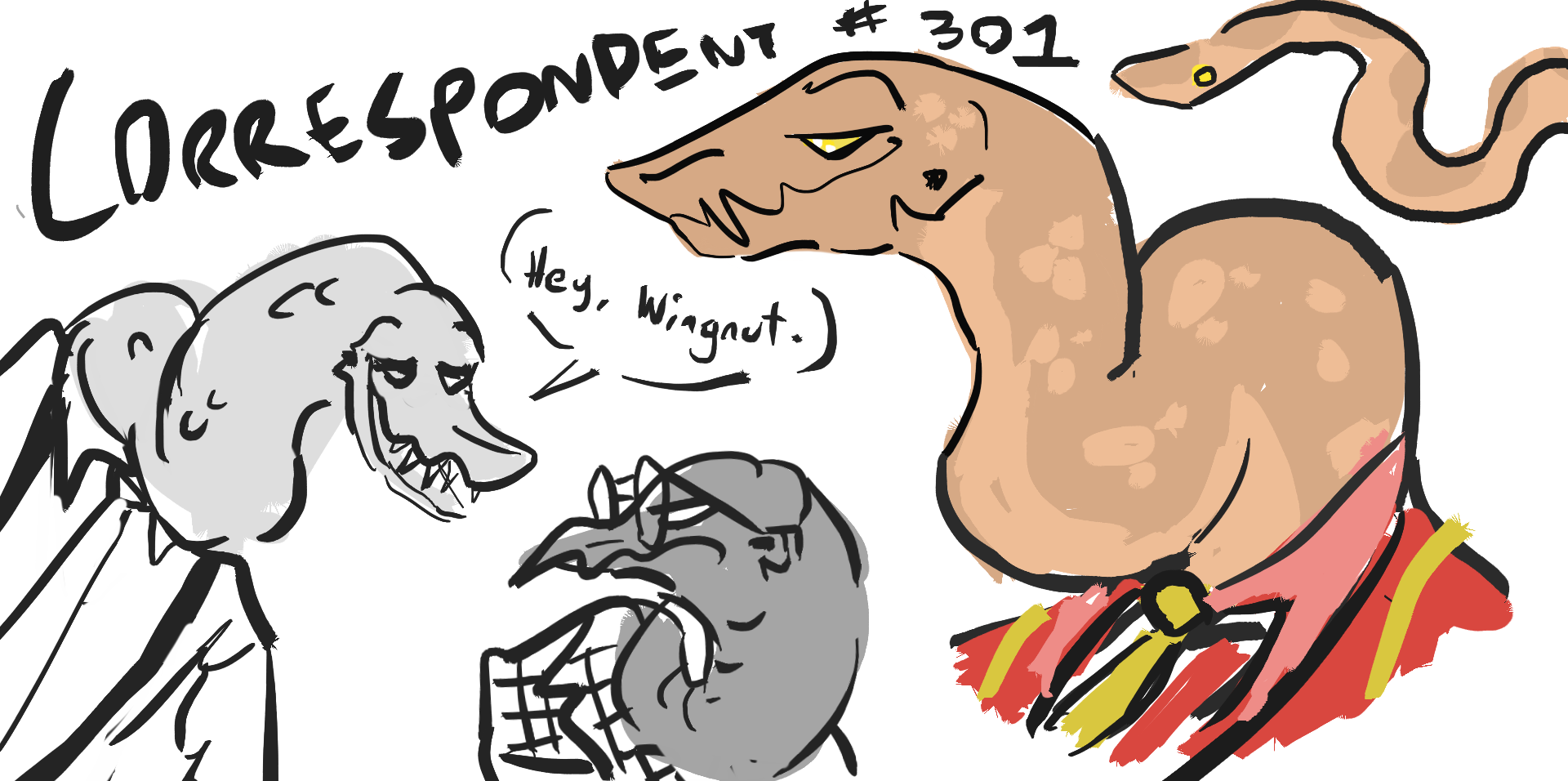 Anyways, you're still on Ramsey's hand, though 'balancing' on Ramsey's hand is far more accurate. Also, your head is now way above hers, though you can see it clearly with your giant eyes. Your dramatic glow has dissipated, so Ramsey with her pathetic (mostly-)human eyes is squinting up at you. "Snickers?"=Wyrm-damned fucking -Wingnut-.="Snickers, buddy, that is about the least slug-looking thing I have ever seen. I think maybe I get why you're being fired. You're not working with her, are you?""I told you I was the Herald," you call down at him. It's a lot easier to pronounce the words now. "I've always been the Herald. I always will be the Herald."=How. How did he do this. How much time on his fucking hands does he -have.- This is— this should be reported. This is a flagrant -abuse- of working hours, to spend so much time on—="Snickers." Ramsey grabs him by the neck, pinches his little head between two claws. "I'm talking to you, you little fucker. You're not betraying me, are you?"You rejoin the chorus. "It was always going to be this way, #301. Isn't there a Script, or something? Should've read it again. Because it says: Charlotte Fawkins is the Herald. Also, Charlotte Fawkins wins. That's the ending. I was going to win, always, and the Wyrm is just about chowing down on its tail."Maybe it would've come out prettier if you were the Herald in your head, not just on the outside. You don't care. #301 is attempting to ignore you, anyways: =There is no betrayal. This was a malicious trap set out for me— for us, of course. For us, to turn the little human girl into a -facsimile- of a— a—="So you fell for that trap, is what you're saying?"=I— I— in a way— we both did, yes.="What's that? We both did?" Ramsey's tone is a spike pit. "Really? Because, from what I know, you came to me saying you could help turn the gal into a slimy slug, no problemo, and I'm looking at her— I mean, I assume that's her— and, boy, I don't see an ounce of slime. And she's twelve fucking feet tall, Snickers."Are you? Wow!"So either you led me into this trap," she continues, "or you fucked up. At a time where, let me tell you, it's very important we do not fuck up. Because if Charlotte Fawkins was a slug, then I'd be a god, right? That's the trade?"=I— I suppose that's—="You're fucking disgusting, Snickers. Sorry. You've gotta go."And, as you watch, Ramsey casually twists her snake into two pieces. She drops them. They clank on the ground.They don't move. Wait, is #301 dead?(6/8?)
