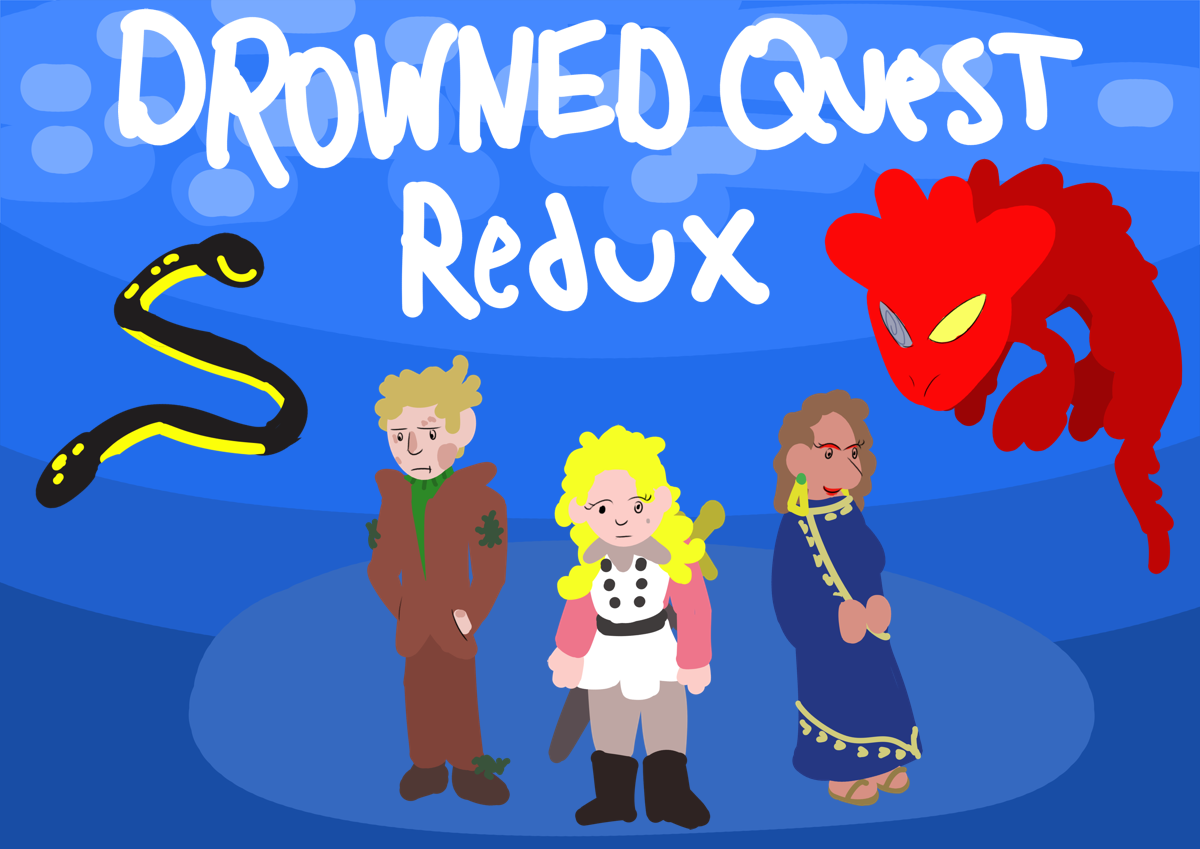 >TO-DO- Defeat Ramsey- Reclaim the Crown- Kill Richard- Become God- Save the world>LAST TIME ON DROWNED QUEST REDUXYou are meeting with Lucky, Monty, and Eloise on the subject of Jean Ramsey and her "Game," the murder-tournament she's been running for the last couple months. It seems that Ramsey has finally made her way back to the Corcass, and she intends to bring the Game with her. In fact, Ramsey hasn't just made it to the Corcass: she bursts in through the door, all chummy, like she isn't a horrible mass murderer everybody hates. She shakes everybody's hand, except for yours: you take it upon yourself to assert your dominance. Unfortunately, Ramsey is unaffected by your powerful grip, and you're left to seethe as she makes her big announcement: she needs eight local "volunteers" to participate in the Game, lest she arbitrarily select them herself. Immediately, Lucky volunteers himself and seven Courtiers, but Ramsey dismisses this: she wants more variety in the contestants. In the end, she allows Lucky and three other Courtiers to volunteer, leaving four slots. You volunteer for one of those, and Monty volunteers for the other, meaning you have to recruit two more participants.You invite Gil (obviously) and Earl-- your second pick after Fake Ellery, who *would* be usefully immortal. Unfortunately, you discover Fake Ellery in the doldrums, having met his real counterpart face-to-face while you weren't looking. Feeling bad for him, you task him with working on the Recharlottizator, then ring up Earl instead, who kills people for a living and is happy to help. This leaves you a little bit of time before the start of the Game, which you use to help Madrigal's efforts to reinforce Base Camp-- she's clearing out a big empty "arena" for people to fight in-- and to meet with Pat, who has a surprise for you. Apparently she's been cooking up a suit of armor for you! Granted, it's made of goo, but you'll take it. You thank Pat, apologize once and for all for wrecking Namway, and promise to bring Lester back from the dead once you're God.And then the Game starts. Ramsey makes a big speech and installs all the new contestants with "tokens," gold coins with Ramsey's face onto them-- they burrow into the flesh, and apparently into your mind, so Ramsey can track your whereabouts. Wonderful. You pair off with Monty, reasoning that he has the most Game experience, and book it before the slaughter gets going.
