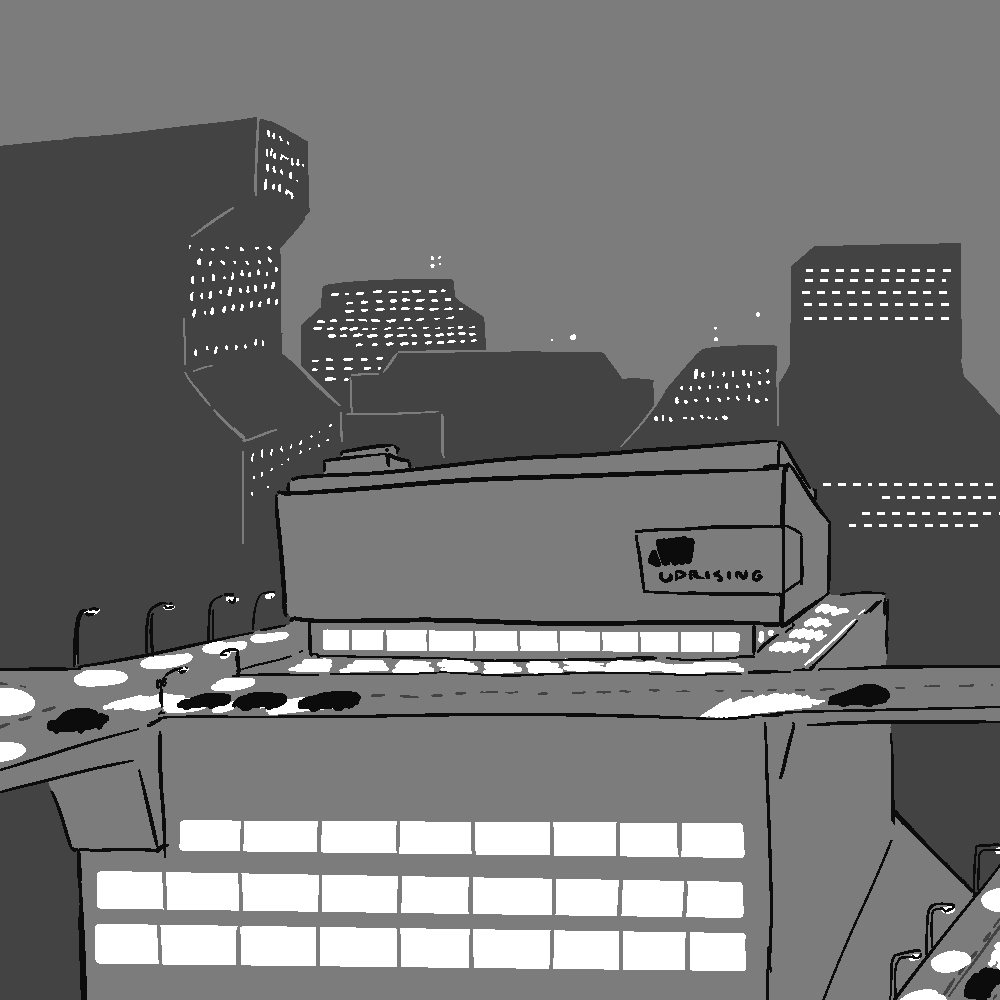 The City is ancient and absurdly gigantic. It doesn't change or react to things quickly. But as you move through the slums, Rayle clearly having fun galloping over rooftops, you can see signs of the City's preparation for harsher times. Humans may not realize the full extent of Luhud plans, but the sharp uptick of monsters made streets a little emptier at night. And as you moved through the better-off districts, you noticed the presence of soldiers on the busiest of streets. Still, it's not like there's a curfew or anything. After riding on top of the train for a while, you and Rayle made it to your destination just fine without being seen by anyone, aside from the sushi stand guy whom you robbed at Stickpoint. Being a massive boring office building, you'd expect Uprising HQ to be in a quieter part of the City, but no. It's taking up a high-rise in one of the central districts, where buildings are tall enough to create what is basically a second ground level. You use your tentacles, and Rayle uses her mountain goat skills to climb up to a vantage point. From there you plan your attack. HOW DO YOU DESTROY THIS ACCURSED VIDEO GAME COMPANY?>The stealthy approach. Get into the studio lower floors, find the ORB on which all the league servers run, destroy it, exfiltrate. Lamer, but safer.>Maximum possible destruction. Wreck your way through the building as you push towards the ORB vault, set it on fire for good measure. The gamer rage cannot be contained.>(Write-in?)I'm curious about what you think about Moldy's goals or character, however little of it is there. Is he truly out to obliterate all gaming or is he just tsundere? Is he just salty about never being good at games despite spending a large chunk of his life on them? This is Moldy's personal episode after all.This update was like a brick wall in terms of difficulty for some reason, but it's here.