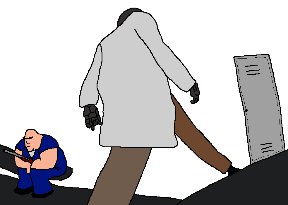"Am I talking to a SACA robot? Are you preprogrammed to respond like this???""This is going nowhere. I have somewhere to be." Whatever patience the WELL-DRESSED MAN had is gone now. "If you keep bothering me, I'll call security.""I-" Liz's body vibrates with rage. She's barely able to keep whatever violent impulses are blooming inside her in check. Whoever he is, he's clearly higher in the facility's hierarchy than her. "Fine! Fine!""I'm glad we had this talk." The WELL-DRESSED MAN turns away towards the hallway behind him. He casually walks away from the fuming, seething mess without a second thought.Liz stands frozen in the spot she's in for what feels like hours. She croaks out something between a sob and a laugh. "He didn't- He's just some random-" Any attempt to articulate what she's feeling fail.She raises her fist up and, without really thinking about it, she slams it into a nearby wall. A low, metallic GONG echoes through the now empty hallway. She grits her teeth as she quickly realizes how stupid that idea was.She tries to regain her composure, to look presentable, but the mask is paper thin. One wrong word would send her spiraling. "You know what, Liz? It's going to be FINE. One step at a time." You heard enough to get a rough idea of what's going on. Something was stolen, and a friend, maybe a family member, of hers was blamed. It sounds like whatever got stolen was very important if a committee is judging his crime.You couldn't give two shits if ARC lost something important, but you can at least somewhat sympathize with Liz. It's not the first time you've seen someone get thrown under the bus like this in a corporate setting.You nearly had it happen to you once, but you got bailed out because the actual culprit was REALLY incompetent. "Hey." Liz calls out to, at first, nobody in particular. She turns her head towards the corner you're hiding behind. "You saw that, didn't you? I don't know who's there. I don't really care who you are.""Can you tell me I'm not cr-" She interrupts herself. "Never mind. Don't believe what Rex said." Rex? Is she talking about that well dressed man? "I'm sorry that you had to see this."You feel compelled to say something but before you could, she quickly runs away. By the time you turn around the corner, she's gone.You have a feeling you'll be seeing her or 'Rex' soon enough today. That odd comment about you rubs you the wrong way; it's like they knew that YOU, not anyone else, was the one listening to them. They were being oddly vague on who the two culprits were. Maybe you should ask around for details about the case? All you know is that Liz clearly isn't taking it well. Maybe it's better to simply talk to her later.Oh well. There's nothing you can really do about it now. After making sure they're both gone, you open your map again. You start your search for any nearby guard break rooms or maybe one of their armories? You'd imagine that's where they store Colt's contraband.