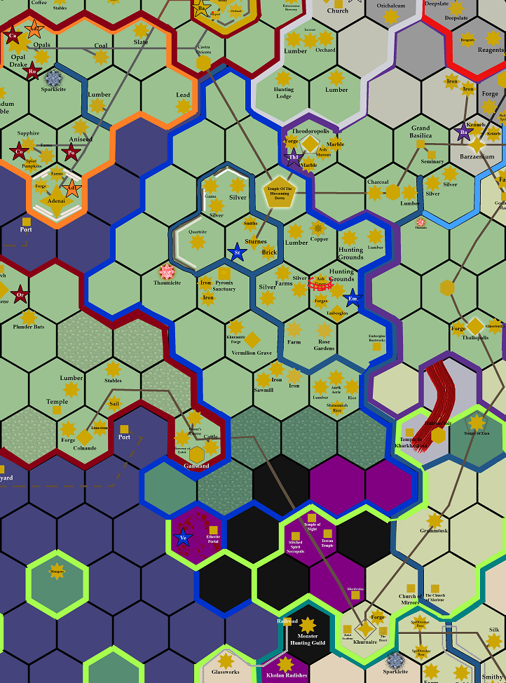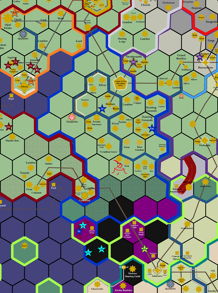 The blossoming dawn temple city rises up, a grand thing of beauty built by the efforts of many nations. No expense is spared as money pours in from abroad, establishing a grand unified pantheon worshipped across the western half of Pavilion. At its center is the island garden of hope where keen eyed archers keep watch over the crystal spire that marks the sealing of the world against the Nachetar Threat.