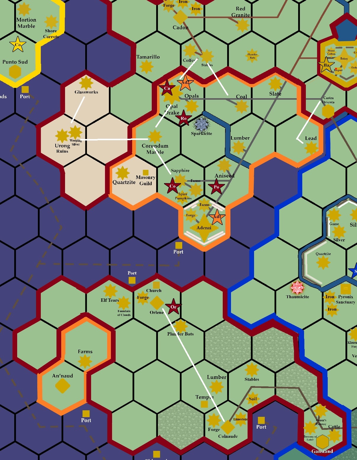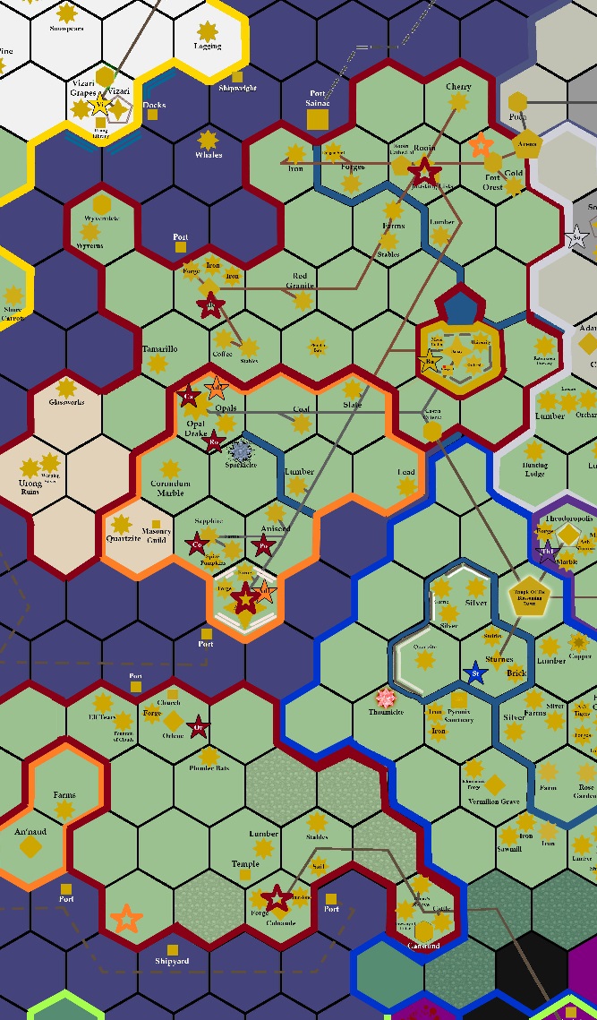 With peace restored to our land, the time is overdue to connect up areas previously cut off from one another. A road from Orlene to Colnaude greatly simplifies travel across the lower peninsular, whilst connecting up the existing Orcman and Adenic road networks seems common sense now that past travel restrictions are to be lifted as part of 'the new arrangement'. The architects begin preparing follow-up projects for if the funding proves sufficient; roads upon the Blanc Isle to better connect Portblanc to vital tin, and even a connecting road to An'naud is considered.