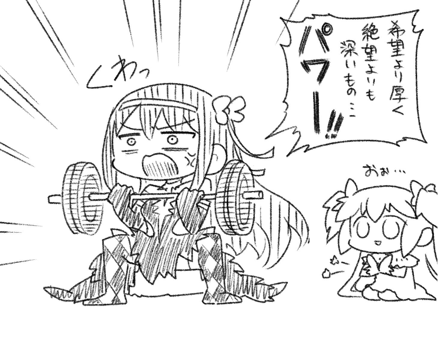 ֍ Sammie: ….let’s do /what/?֍ Inno: That! Like the Magical Girls all dem little girls like! Let 's pose!֍ Sammie: …/WHAT/?Sammie tried but It was too late; Inno had already taken the phone and was watching the show, as the little writer could do little but watch and despair.֍ Inno: Aight, I get it. C’mon, with me! like this!Inno poses. Fubuka giggles nervously.֍ Fubuka: …Ummm… Hahaha, n-no… Teacher, you are a bit too big already.֍ Inno: I’m a Magical Girl too y’know.Inno poses. And Sammie grimaces, filled with a measured mix of disdain and disbelief.֍ Sammie: …No. You are /not/ a Magical /Girl/.֍ Inno: Yes I am! Peak of my youth. Les go Fubuka, like this!Inno poses. Fubuka subtly glances at both sides, but there’s no way out. The rain didn’t let up yet.֍ Fubuka: Umm… Maybe later, Teacher Inno? I’m feeling a bit down lately…But Inno- pouts. It’s too noticeable. It 's inescapable.֍ Inno: Awwww, but I neva ask you to do anytin…֍ Fubuka: No! I’m not saying no! It’s just- I’m never gonna forget this if I do it.Inno poses, smiling widely at her. Fubuka SIGHS- but chuckles.֍ Fubuka: I can’t believe im doing this. Like this?Fubuka poses. Sammie turns around, facing the endless rain.
