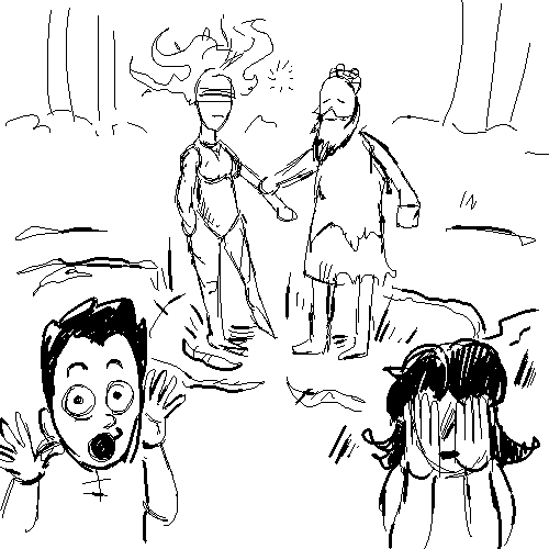 >>6337153You run as fast as you can back to the two siblings. There's not a moment to waste! Once you make it back to your favorite log, the two humans are back within eyeshot. The young man is still laying on the ground, groaning in pain. His sister is there at his side, hands clutched and whispering prayers."I have it! I have it!" You still have the joybell in your hand, although due to all the running it is somewhat wilted. No matter. That will no effect on its potency. You kneel down to the young man. "Open your mouth. I have a cure for you. Make sure to chew thoroughly and swallow." You speak sharply, but you're more afraid than angry.The man opens his mouth, and you gently slide the whole flower past his teeth. He chomps down on the joybell and chews for a while, then swallows as you instruct. His eyes pop open after a few minutes."Great sky above! You healed me!" He gets an eyeful at your less than presentable appearance. Your beard is unkempt and your cloak is ragged. The young man sits up. "Are you a sage?""He is a holy angel, dear brother! I saw it. He came down from the sky as a giant bird, and then he changed into this man. Akvon heard my prayers!" The young woman is practically crying. "Thank you, blessed one!"The young man gets to his feet, and begins to stretch and flex his muscles. "I've never felt this good before!" He hits a few masculine poses while his sister practically throws herself at your feet, bowing.>You've never been worshipped before, but you could certainly get used to this. Keep up the facade of being a holy angel of this "Akvon".>Clear up the misunderstanding. You live among the giant birds, and came to this clearing for some grubs. Please step aside.>Ask the two humans what they're doing out here in the forest. They are young and don't seem to have any weapons.>Those grinning plants will only grow and spread through the land. You need to uproot them immediately! Go back and deal with the accursed creatures.