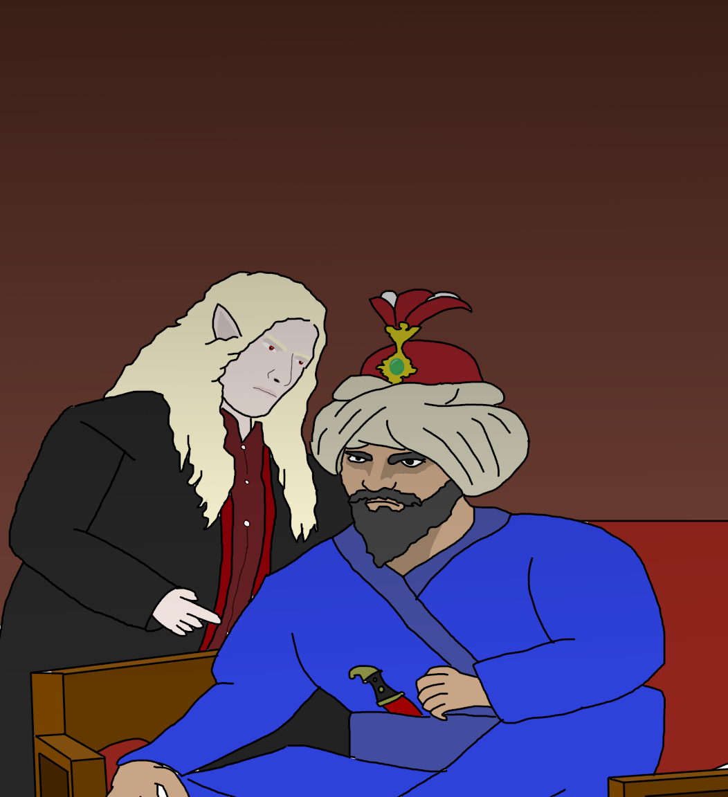 When the time would come, Qasim's elder brothers would be safely disappeared. It has been a while since you had practised some of your darker arts, though, whether you would let them be possessed, vivisected, mutated or some other thing. That was a decision you had yet to make.Thanks to the practise of the harem, he had many brothers, both older and younger than him; the youngest was 16, the eldest 32. None of them had children, so in one fell swoop you would eliminate all alternatives to the throne. As to his sisters, they were of no relevance; by law they wouldn't be eligible for the throne, though you did make a contingency in case one of the number decided to be unruly.A few more months went by. While you settled into your new role as grand vizier, you decided not to endow yourself in the usual garments and demanded a reduction in salary as a show of humility, though in truth, you had no need for money. As vizier, you were effectively the head of government, overseeing all matters of state and advising the sultan on various matters, and you did your best, eliminating corruption, reforming the state apparatus to more effectively raise troops and taxes, and promoting new trade policies. Master bureaucrat that you were, you worked through the night and day, diligent and incorruptible, and made records of all attempts at bribery.In reality, of course, you were the conduit of corruption, though of a different kind, for if there was one thing you hated, it was inefficiency. While removing the corrupt from various sections of society, you brought in men dependent on your patronage; from the top to the bottom, you created a web of loyalty and favouritism that ensured your power and influence grew at the expense of the other council members.At the same time, you send Erassyl out with a select few men to reactivate the old fortress in what once had been Shuagaz, for you wanted your future captives to be as far away from the palace as possible. In case Brother Qasim ever felt merciful, not that he would ever see them again. As you drew the lines upon the floor, Erassyl came in, bowed and said. "Lord, parts of the fortress have been restored as per your orders; we have been able to renovate the dungeons and laboratories, while the outside remains a heap of rubble." "Then thou hast done as I asked, which pleases me. Hast thou replicated the ritual circle of teleportation as per my instructions?" You asked. "I have" On the night that Asmar would die, his other sons would be captured, taken here, and teleported to your now reactivated outpost, where your other minions would keep them prisoner. They will never see the light of day again, or perhaps they would, but not as they are now.