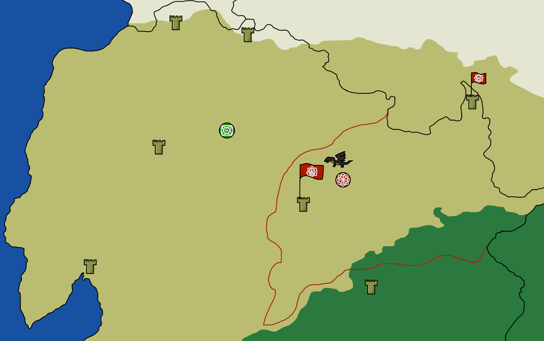 >>6349747You also taught them a few spells concerning the leeching of blood and how to mingle their own blood with other creatures to improve their own abilities. While they practised what you taught, you retired once more deep within your set of laboratories and smithies, for there was much more to do. With the subjugation of a quarry capable of producing quality sandstone, new opportunities for building would soon be opened, once enough of the stone was gathered, of course. And a good thing too; your infant realm was surely beginning to properly coalesce. While once you would have been able to coordinate from within the set of village houses, the infant state would need more. Thus, upon a nearby rocky plateau, the foundations and dungeons for a new fortress were to be laid, circular, with a central tower from which you could better oversee these matters. But it would take a while to properly construct such a stronghold, and in the meantime, further conquests were ahead.With your weakening of the various bandit clans, the various sultans, emirs, and sheikhs have been able to regain some form of control over the previously lawless desert. Someone else was benefiting from your own work, and it perturbed you greatly. Your warband could take on bandits, but you hadn't tested nor probed the might of the desert princes. This would be a scramble, and one you intended to win.Ledger2 Building materials (+2 per turn)6 Wealth2 Iron (+2 iron per turn.)1 ElixirIf you march upon one of the coloured-in provinces that aren't red, it will be war.Warband actions>March upon the remaining iron mine, and have the other warband conquer the land in between.>March upon the gem mine.>Consolidate as much desert as you can, without ticking off the others.>March upon the other quarry.>Take the uncontrolled lake, so I might pour the elixir in.Bandit actions won't provoke actions unless they get caught.>Raid an iron caravan>Raid the gem mines>Assist in operations>Have them run drugs into the sultanate.>Raid a quarry