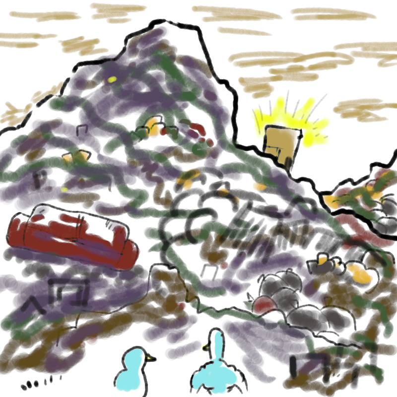 >>6347675You can't rush art, anon. Good things come to those who wait, little dude! ;)You follow Jeff through other green places, until you come to a strange area where there is no more grass, and only flat rock covers the ground. The floor feels strange and coarse under your tender duck feet, but you push through it. You don't want to look like a wuss in front of your new friend. You see a lot of strange sights that you hardly even have the words to explain."What is this place?" You ask. "Are we at the junkyard yet?" The hard ground is beginning to really make your feet sore.Jeff smirks. "Almost, little bro. This place is where the long-steppers live. You know, the large ones that feed us bread sometimes?"You've never heard anyone call the giant creatures long-steppers before. "Oh uh, yeah. Those guys. They have all this land?""Yeeeep." Jeff nods. "This might blow your mind, but the green place we live in is located in the middle of their land. Anyways, keep your head up. We're almost there!"You sigh and keep walking. Eventually you push through another hole in a different wooden fence, and take in the new view. Large, large hills of strange objects piled and stacked and piled up on one another block out almost half of the sky and cover the horizon. The air is sour and sharp here.You cover your bill and heave. The stench is like nothing you've ever smelled before."Yeah, you'll have to get used to the aroma. I'll give you some time to catch your breath and take it all in. I have something I want to show you.">Beg to go back. This is too much for a normal duck like you to handle.>Steel your nerves! It's time to stop being a wuss and show some initiative. Tell Jeff you want to look at these strange things littered about.>Catch your breath and let Jeff lead.>write in