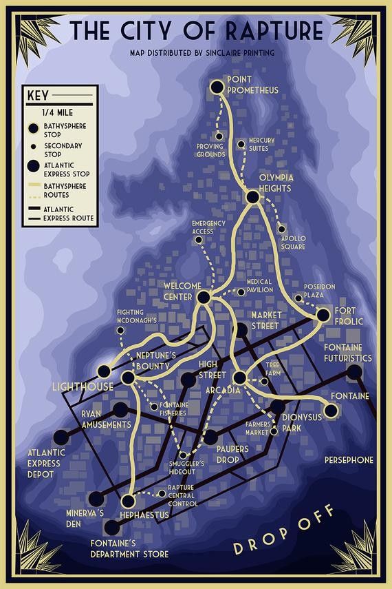 The city is seen in all its splendour, lights and buildings shine all around you, a whole city under the sea, neon signs and advertisements of all kinds can be seen everywhere. It reminds you of your heyday, inviting you to lavish parties, stroll through high-class places, and spend a fortune in a single night. After the film ends, one of the managers says that they have four stops. Some have been given a place to go, while others can decide where to get off. You are one of those who can decide where to get off, so they give you a pamphlet with the four stops on the underground. > Station 1 - ‘Euterpes Theatre’ The description talks about one of the finest theatres in the city where only the most important people in the city perform. Tonight, Sander Cohen is presenting one of his new plays, and a buffet is open for new arrivals. > Station 2 - ‘Kilimanjaro Apartments’ The description talks about a mid-range apartment tower. They are not luxurious, but they are not that bad either. A good place to start in this city with basic comforts and amenities, the perfect place to start a brilliant career in business or the arts, just a few hours from downtown Rapture where everything is easily accessible.> Station 3 - ‘Fountaine Corporations’ The description refers to one of the fastest-growing companies in Rapture, where new research and future technologies are born. It is a perfect place to find work quickly, as they are always in need of men and women for all kinds of jobs. > Station 4 - ‘City Engine and Service Station’ There is no direct description of the place, but from the name you can imagine that it is where maintenance, physical labour and construction of the city are carried out.