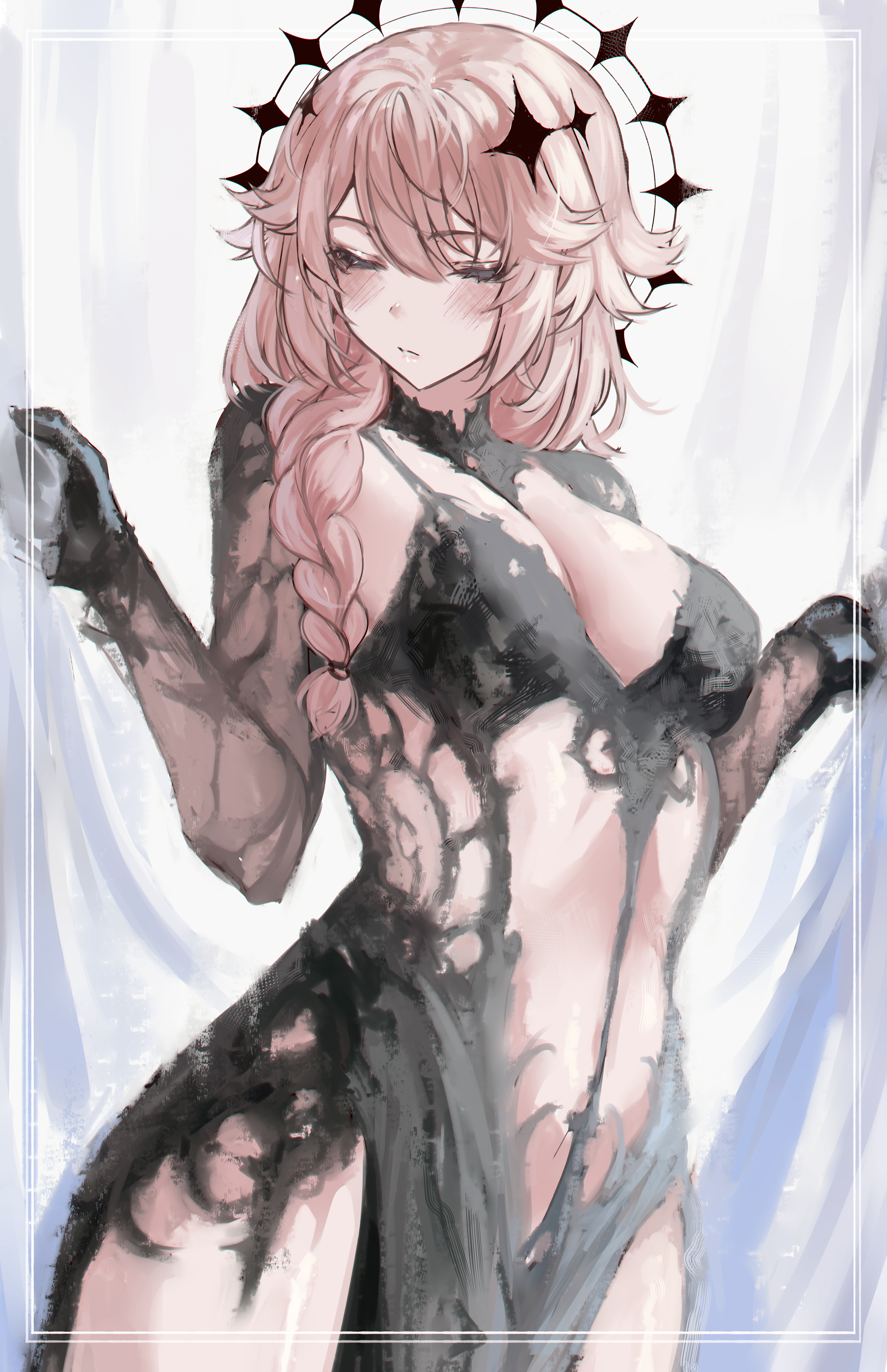Yes. That's right. You see it. It tempts you. Calls to you. Draws you in with the sweet whispers of a succubus whose fingers have just begun to delicately trace the outline of your virgin flower. You want it. No, it's not a want - it's a need, you [i]need[/i] it just as much as you need the air your meat puppet breaths, the food it has yet to eat, the water it has yet to drink.Gold.Treasure.Valuables.The glittering hoard amassed by the candy-ass vampire who calls himself the demon king. How does a glittering, glimmering Edward Cullen wannabe obtain such fat stacks of gold when three shakes of your tight ass gets him so horny that he has to fuck his twin Asanagi-heroine looking bodyguards before coherent thought can be restored? The mysteries never cease. Truly, there is no justice in the world. [b][It should be ours!][/b] growls the uppity angel. [b][We should take it from him, and use these wild riches to depose the Usurper! This fool would waste it, distract himself with the follies of the flesh, addict himself to his cage. Quickly woman, sip of my power, we shall slaughter all who would stand between us and the castle treasury!][/b]You do just that. The harem clothes - crafted by the System to be as generic and titillating as possible, as expected of a low value pull - explode off your body. Don't worry, you probably won't need them again. This is your magical girl transformation sequence after all. Though because this is an X-Rated Harem Gacha World, there's no mysterious lights to hide the details of your perky breasts and neatly trimmed, heart shaped pubic hair. The outfit that replaces it... well, it shows that our pal Shammy has some daddy issues.[b][What?][/b]Let's not deny it. The black halo oozing with corruption, the shadowy sword, and the upside down angel wings, those I understand. They're part of the whole "fallen angel" aesthetic Shammy has going on. The coin being set in a golden choker can also be forgiven. As can the booty shorts and the thigh highs, because those are a match made in heaven, especially with your assets. Popped collar on the bolero jacket, very fashionable, but then...But then you have the corset that's not even doing anything except looking sexy, because your tits are out. Even a handful can look appealing when they're just there, free to bounce and sway and do all the wonderful things tits do. Which brings me to the second point, did Shammy really need to shape the pasties like the cross patonce? When everything is white and trimmed with gold, and the number of crosses, you look like some sort of angelic stripper. [b][It's MY powerset, I get to design the outfit.][/b]Wasn't he just complaining about "gyrating"?>Quick, while they're arguing, take everything that's not nailed down.>Quick, while they're arguing, rip and tear until it is done.>Go find yourself a snack.>Leave.>Join the orgy.>(Write in)