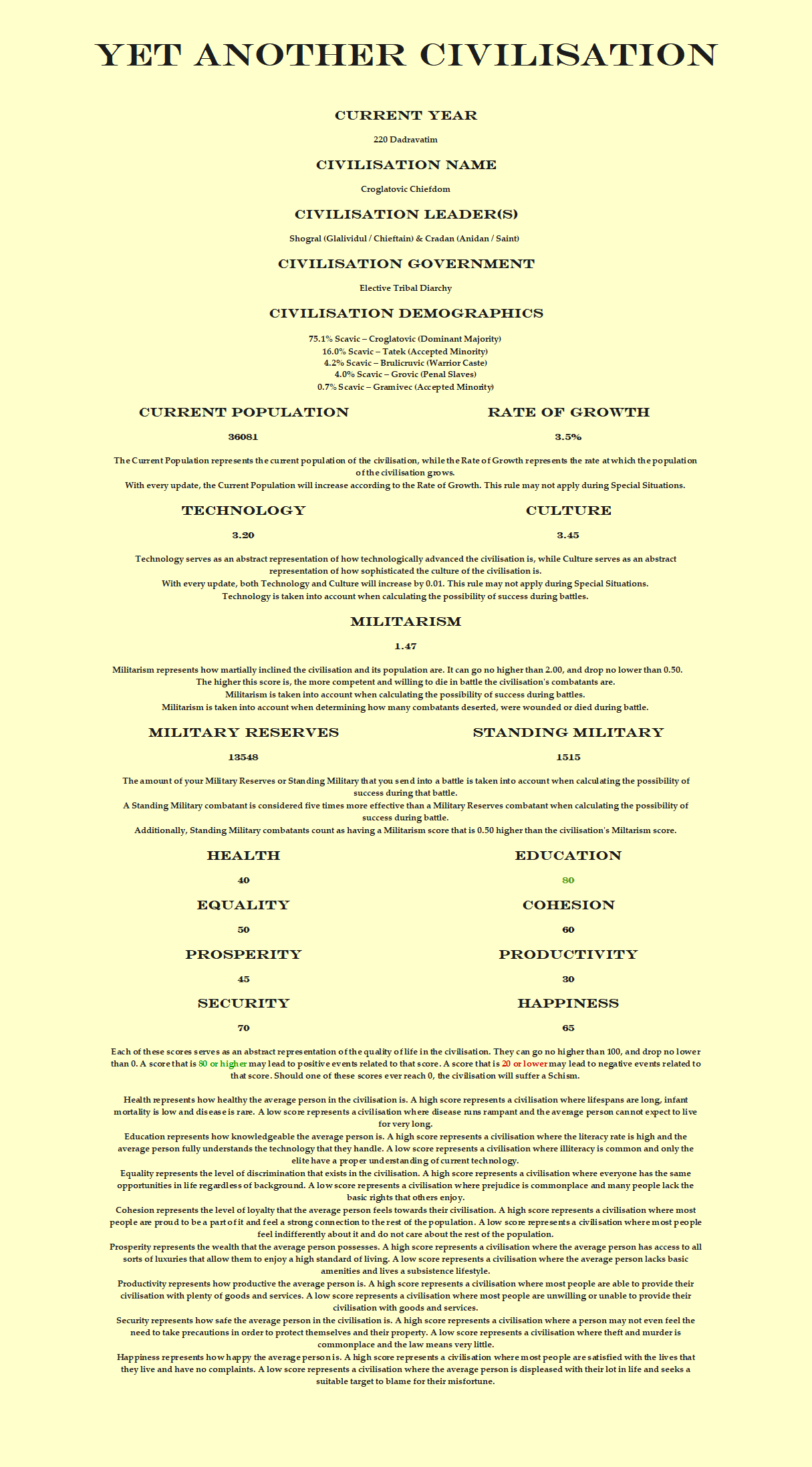 >Encyclopedia. This document contains a glossary and everything that there is to know about the Croglatovic civilisation so far.