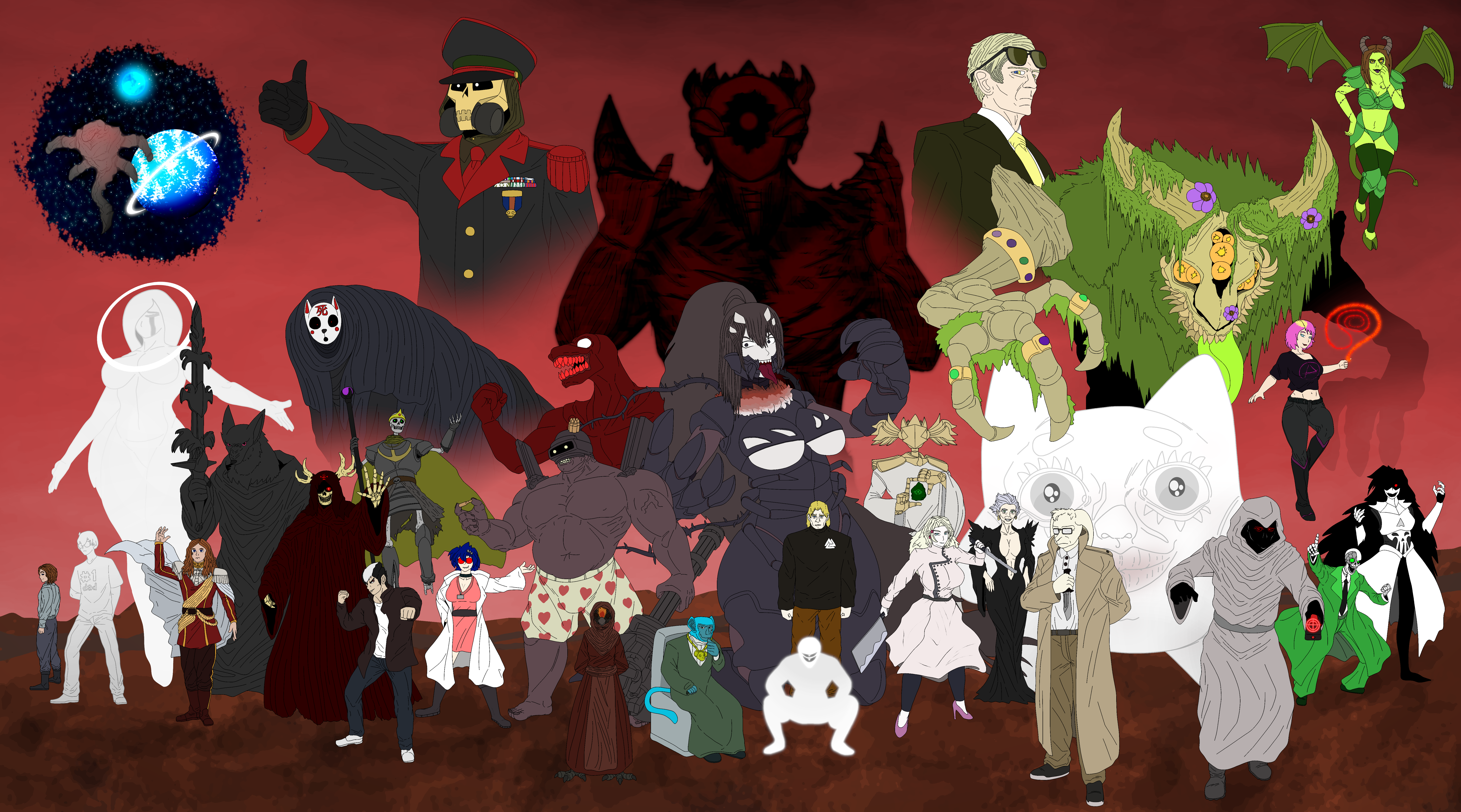 I was really interested to see the players genuinely choose to focus on the success of the Dark Gods and the Serpent Priests and to voluntarily leave Edwin behind, and their subsequent UNwillingness to abandon Irinnile even after she was revealed to be genuinely incapable of true love or recognizable human emotions, even moreso than a lizardperson. I actually based her partly on AI chatbots. The fact that they couldn't bring themselves to corrupt Edwin, or to kill their baby cousin at the behest of their gods, was also a really interesting (to me) internal contradiction, which I interpreted as a mix of conscious desire for legacy and significance, and a subconscious desire for connection.Each subsequent quest has largely focused around her kids (Dragonborn Antipaladin Quest, Cambion Quest) or other relatives (her spared cousin is the MC's rival, friend and collaborator, love interest, and source of both much knowledge and many troubles in Seekers of the Esoteric) being embroiled in generational trauma centres on those same three main drives: hedonistic self-interest (pursuit of money, sex, status, knowledge), duty to the world (or to their people/gods/ideology especially), and maintenance of their personal connections. To my delight, each subsequent quest has seen the players (and thus characters) prioritize different values and arrive at different conclusions as to how to balance those things.The convoluted nature of the family tree that has resulted also means I've spent a lot of time exploring concepts like>moral relativity between very different and often opposed civilizations and philosophies>predestination and mechanistic or artificially-directed nature versus the desire for freedom and self-actualization>mutability of the self, society, and even fundamental natural truths in an age of emerging technologies and shifting demographics>the costs, benefits, and dangers of developing and disclosing dangerous new ideas>the plight of the outsider, hybrid, or freak (every protagonist has been in some way mixed in race, spiritual nature, or sex/gender)A lot of this is informed by hopes and anxieties about, like... The world today. A lot of it is drawn from esoteric mysticism, New Age religions and UFO cults, transhumanism and longtermism, and of course from good old-fashioned conspiracy theories.A lot of its is also vaguely Jewish-flavoured, because... Well, Jews map well onto and often intersect with...>conspiracies involving lizardpeople and dark gods>emerging technologies (Silicon Valley et al)>angsting about one's identity, feeling like an outsider to the society around you, and having conflicting feelings about one's duty to one's people>the history of esoteric mysticism in the West and Near East>I was married to a Jew and knew a bit more about them than some other groups>I was Catholic when I was younger, so I literally worshipped a Jew for a while, kek