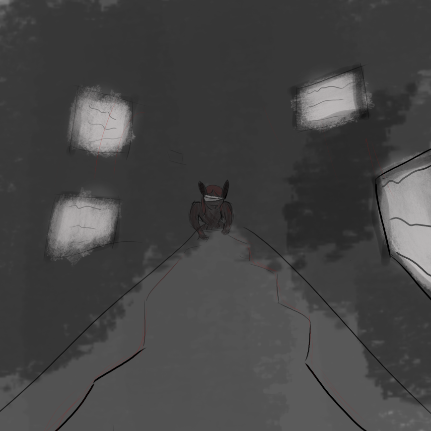 >>6374022>>6373995>>6373966>>6373906You head for the computer room, and L starts shaking her head violently. “No, nuh uh, not doing that, do it yourself.” She vanishes like she showed up, quickly and quietly. You’ve had some combat experience under your belt, but it’s hard to not feel a bit stressed when everyone treats this like you’re going to die in an instant.You look at the computer’s room keyhole, hoping to see anything, but apart from a few flashing white screen, it’s pitch black. Still, the positions of the screens on the walls implies this is a hallway leading to the computer room, rather than the computer room itself, which means you’ll need to get past a narrow, enclosed space to get to the room you want.Slowly, you open the door. Nothing. You flash the flashlight, nothing, as in, the light isn’t revealing anything, you fiddle with the dial a bit until you get to a normal light. Still nothing, an empty hallway, with the only notable thing being bloody scratch mark trailing across it.Not quite convinced of the safety of this path, you turn the dial to different settings, and even though the hallway is back to being dark, you now notice a form that somehow went unnoticed before, a humanoid thing with covered eyes and giant bat looking ears. It has fur that looks brown under this light, but it was impossible to see before that.You take a deep breath; it gets on all four, its hind legs hidden by the darkness. When it moves, the invisible property of its fur subsides, but just like the plant girl, this one is as silent as can be.Even though nothing’s happened yet, your armor is shaking. You have a bad feeling about this. You need to choose your opening carefully.(Any option not mentioning Table will have her try to defend you instead.)>Brute force. Table can throw everything at it while you focus on defending her, this will probably kill your opponent, but it’s bound to work.>You still have your handgun, no matter how fast that combat unit is, it can’t dodge a bullet. Shooting its legs might be enough to incapacitate it.>Harden, strength, juggernaut. Let’s fight them on their own terms and win.>Fire? Fire. Spark and Fire Flare are nearly instantaneous and quite effective, but hitting them might be harder than it looks.>Something else? (Write in)
