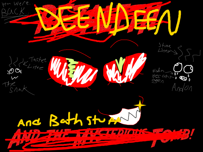 You have something to say, you begin, your REGAL gaze sweeping the bath like a general’s about to give a speech! When all eyes fall upon you, you put your master plan into action!“Errm, d-DEENDEEN?” Anton meekly asks as you resurface from the water with an exultant gasp, “What, uh… what are we doing here?”What does he mean, ‘dwwuuhrwheedwurrringhurrr’, you ask as you flick AntTOOL’S forehead and send him tumbling into the water! You just held your breath for an HOUR!“That was… maybe a minute.” He answers, rising from the bath as he gives your hosts an apologetic smile, “... Tops.”“Your swimming abilities are impressive, Ms. Deendeen…” Torfeo adds, earning a nod from his Gnok guest, “But did you have something else to add?”The moron can’t count. SHOCKER! Shaking the water from your LUXURIOUS hair, you turn your attention back to the task at hand: this bath is acceptable–it lacks that warm, reassuring sensation of blood and viscera–but now that you’ve gained everyone’s awestruck and intimidated attention you’re ready to make your move!… if only you knew what that move WAS! Is… why did that moron AnTARD ask YOU to talk!? Granted, it’s a sign of intelligence to let your superior take the lead, but… but what’s so important about dumb birthdays!? All of yours were just another excuse for everyone in CHAA’TAI to EMBARRASS you! GROSS!… but would you notice if everyone stopped?W-well of COURSE you would! Demons of your caliber should be praised! EXALTED! WORSHIPPED! Who cares if you get your face shoved into theSpawnday Offal and the Spawnday Wailing is off-key? If someone failed to address you properly on your special day, well…You’ve be LIVID! SICK with rage!That’s when it hits you–could… could these maggots…… could they too feel this way? What… what IS this you’re feeling…?!EHM’PAATHI…The bizarre incantation echoes through your skull, taking root in your mind with each reverberation! Yes… you understand these primitives… and while you’re no slave to your emotions, they, well… it’s only natural they’d react like this! Like larvae!The weak must be sheparded–it’s the curse of the strong. And you? You’ve endured much. Broke your chains. Spared Anton despite his cowardly theft of your power…… made friends.“Errr… DEENDEEN?”The question yanks you back into the present like a PIT TYRANT’S hooks! Y-yea, you cough as you plant your hands on your hips, you DO have something to say! And they’d better listen!“When, erm… whenever you’re ready…” Mutters Obbher, clearly unsure of what to expect!>CONTD.