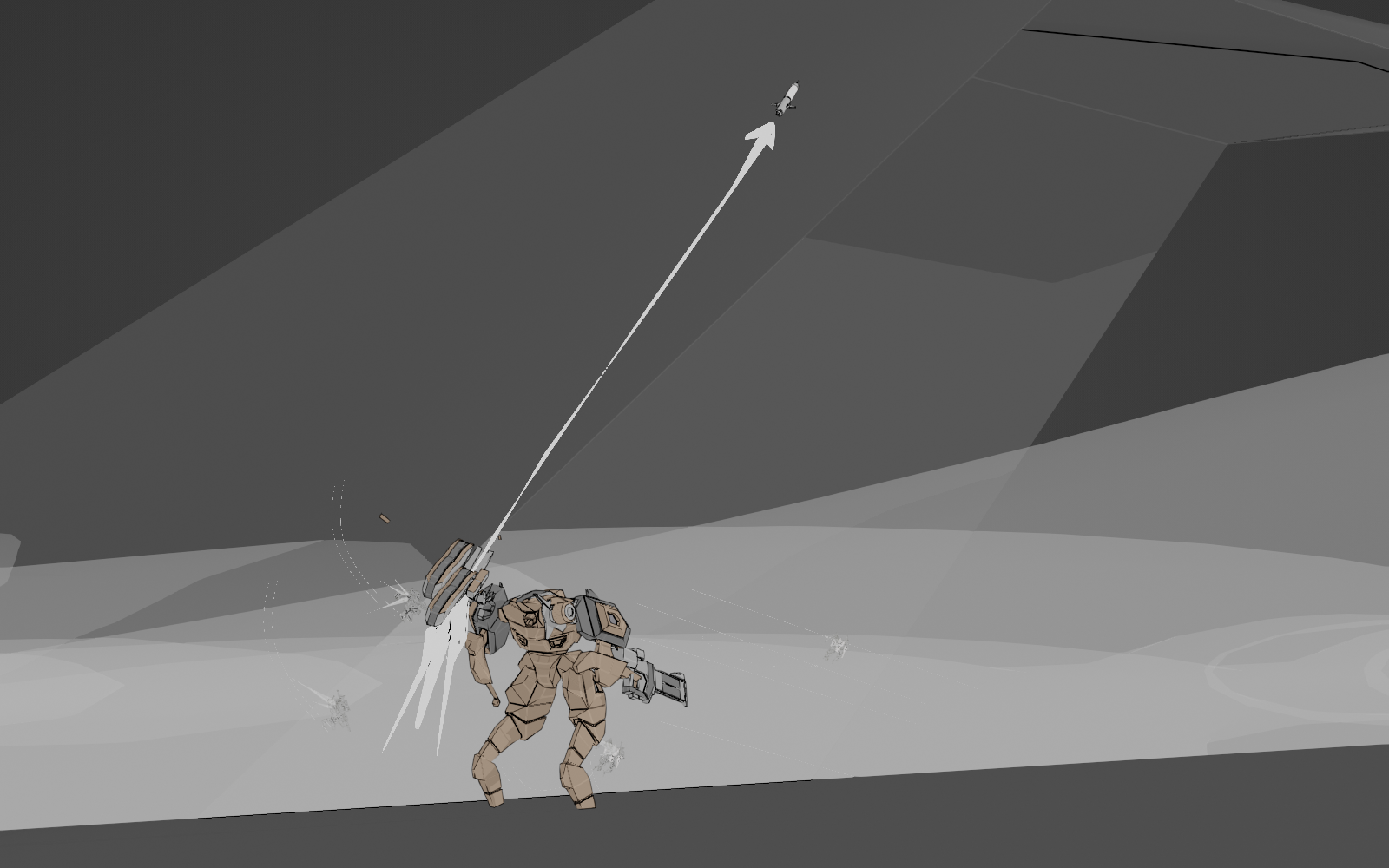 >NODE 2-1.Your central force mounts a concerted attack against the automated defenses. CORVID, HERMIT, RUIN, BUTTONMAN, and STONEFISH work as a unit. Their heavy, shoulder mounted cannons prove invaluable here, providing enough power and accuracy to breach their entrenched positions. Your pilots find favorable positions above the MAIN FABRICATION COMPLEX and pick apart the enemy formation piece by piece. However, the stitching autocannon fire from the turrets catches STONEFISH as they attempt to flank from an awkward angle. The mech crashes onto the ground - armor damaged, but still intact.COMBAT:>TURRET EMPLACEMENT 2-1-2. 4 HP | HIT DC5 | [EVASION]. SALVAGE:>CACHE (1). [Roll 1D8 for salvage] [1-7MU CREDITS | SCHEMATIC/SPECIAL/UPGRADE on 8]>TURRET EMPLACEMENT WRECKAGE. [Roll 1D4 for salvage] [2-6MU CREDITS | COMMON BACK WEAPON SCHEMATIC on 4]>GUARD DRONE WRECKAGE. [Roll 1D4 for salvage] [2-6MU CREDITS | COMMON ARM WEAPON SCHEMATIC on 4]