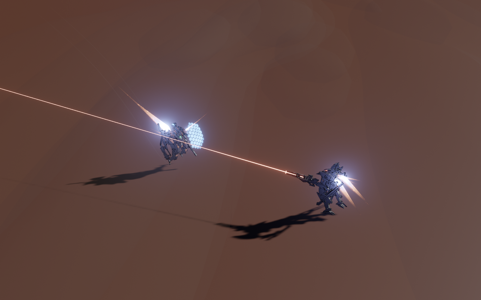 >SURFACEThe first foundation tank squadron fragments and collapses under the combined fire of your company. OGRE and KINGKRAB maintain sustained fire, zipping bright cobalt tracers into the Martian dusk. After a fierce firefight, all three remaining tank frames crumple into guttering wrecks, ablative armor broken by sheer weight of fire. The bombardment transmission fizzles out seconds before the satellite can confirm the deorbit request. Removing the bombardment threat in this sector stops your forces from being pinned against the facility entrance. However, the other foundation tank unit is able to successfully transmit their backdoor authorization code. A heavy MOCA bombardment satellite comes into view and twinkles overhead like a wayward star. Several minutes after your southern force escapes north, a building-sized rod of foam-phase hydrogen slams into their former position like a falling comet. The video feed briefly dissolved into white noise. A pressure wave rolls through valley system. By the time it clears, a solid quarter of the canyon delta has been transformed into a landscape of shattered rock.With mounting dread, you realize that the foundation reinforcements were neither sent to retake the facility nor to repel your forces. Instead, you were witnessing the execution of a contingency plan. Each of the enemy squadrons was equipped with an orbital homing beacon meant to target the underground facility once it was in range. MOCA orbital surveillance - and the mercenary board - would notice the damage eventually, but by then not a single trace of the original structure would remain for investigation. Given the plague outbreak that was boiling up the facility, wiping it off the Martian surface was a condition you would have been willing to consider on in a different situation. But not now. You still had pilots in the tunnels, and you needed to hold the elevator until the last of them could reach the surface. However, that was easier said that done. The rest of your forces were still engaged against the foundation advance. GAMBLER, GORGON, and GASHADOKURO skirt around the edges of the main formation to pick out the lighter skirmish elements, while RUIN and SCARAB focus on the remaining heavies. A particularly skillful bazooka shot skims the surface of the canyon before detonating in the middle of the formation, catching a tank and two or three escorts in a thermobaric fireball. It is not enough. As the first groups of pilots leave the facility, multiple foundation units land close enough to begin transmitting targeting information. At the same time, you see the rock churning - and then boiling - as tendrils of plague breach the surface into the thin Martian air. Your expression tightens. Your company has one chance - one window - to escape before the situation enters a terminal spiral.[THE CONTRACT WILL BE COMPLETED WHEN ALL UNITS REACH A SURFACE OR ELEVATOR NODE]