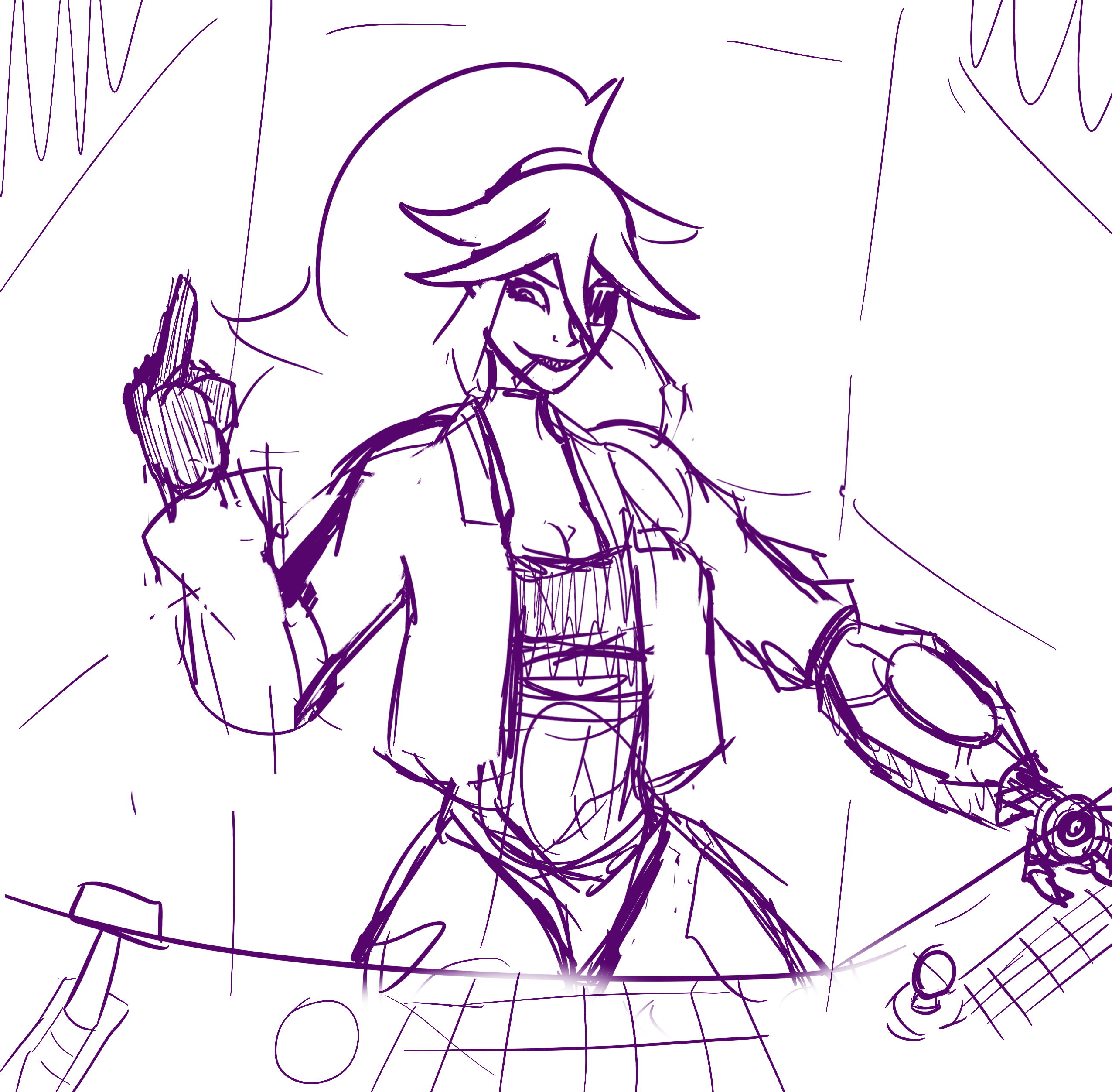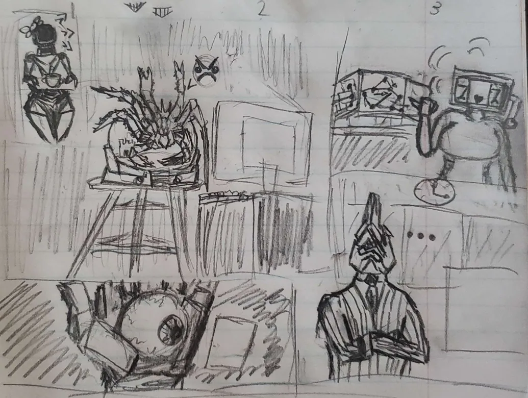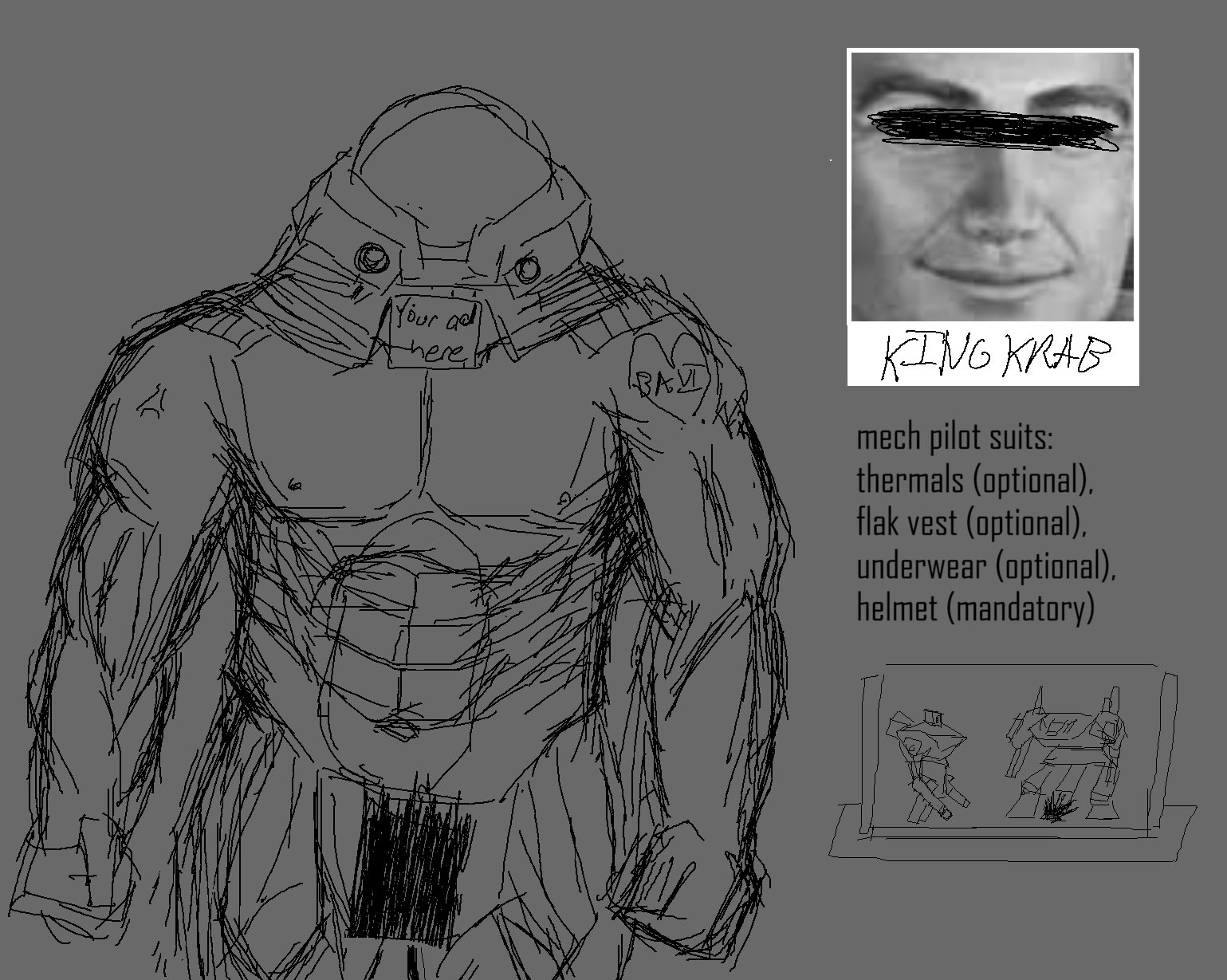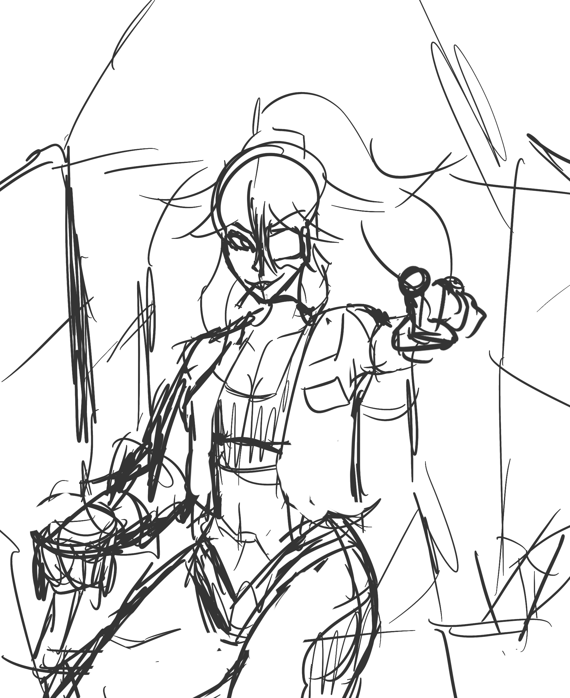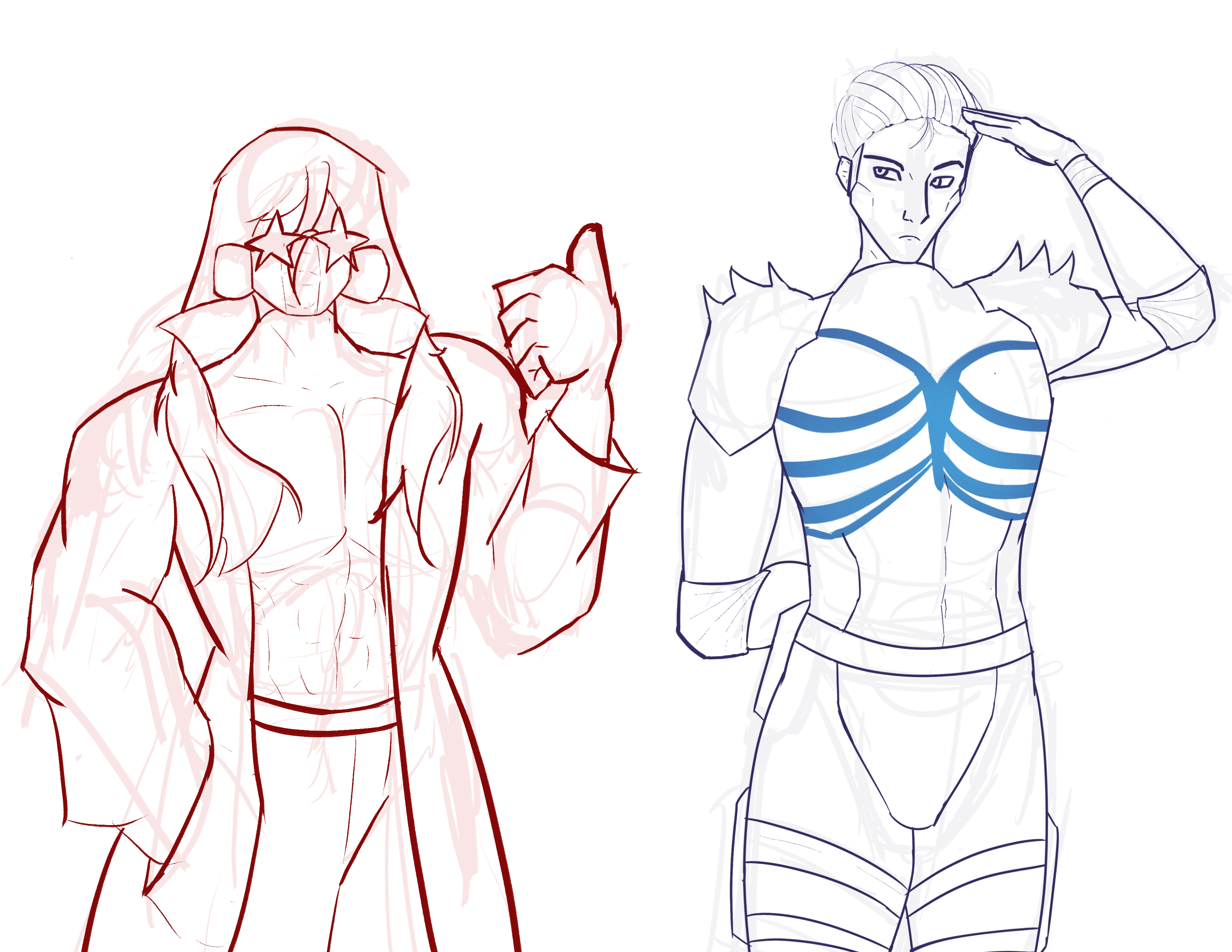Posting the first of three DUO DOODLES, where I've paired two pilots together based entirely on a funny duo name I had in my brain. Today, Kanchō and Stonefish— [POKE] (I may or may not come back to polish, color, and tender later)