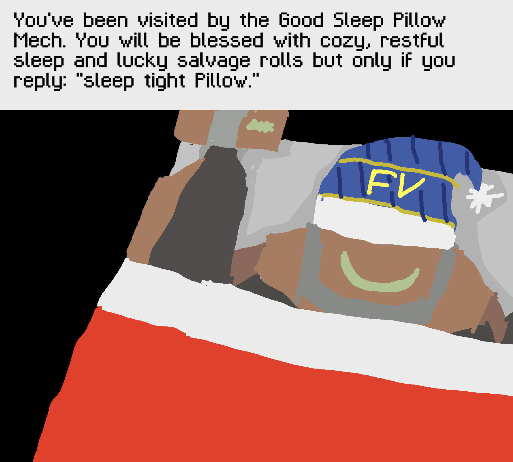 >>6389181Sorry, life has been fucking me in the ass and still is, and I don't know when it'll stop. I don't know if I keep playing-in this thread at least considering I'll probably be coming in only occasionally when I get enough energy to play catch-up.Could you give my mech to another player or something for this thread, QM? Or open up the slot for a different anon to play.