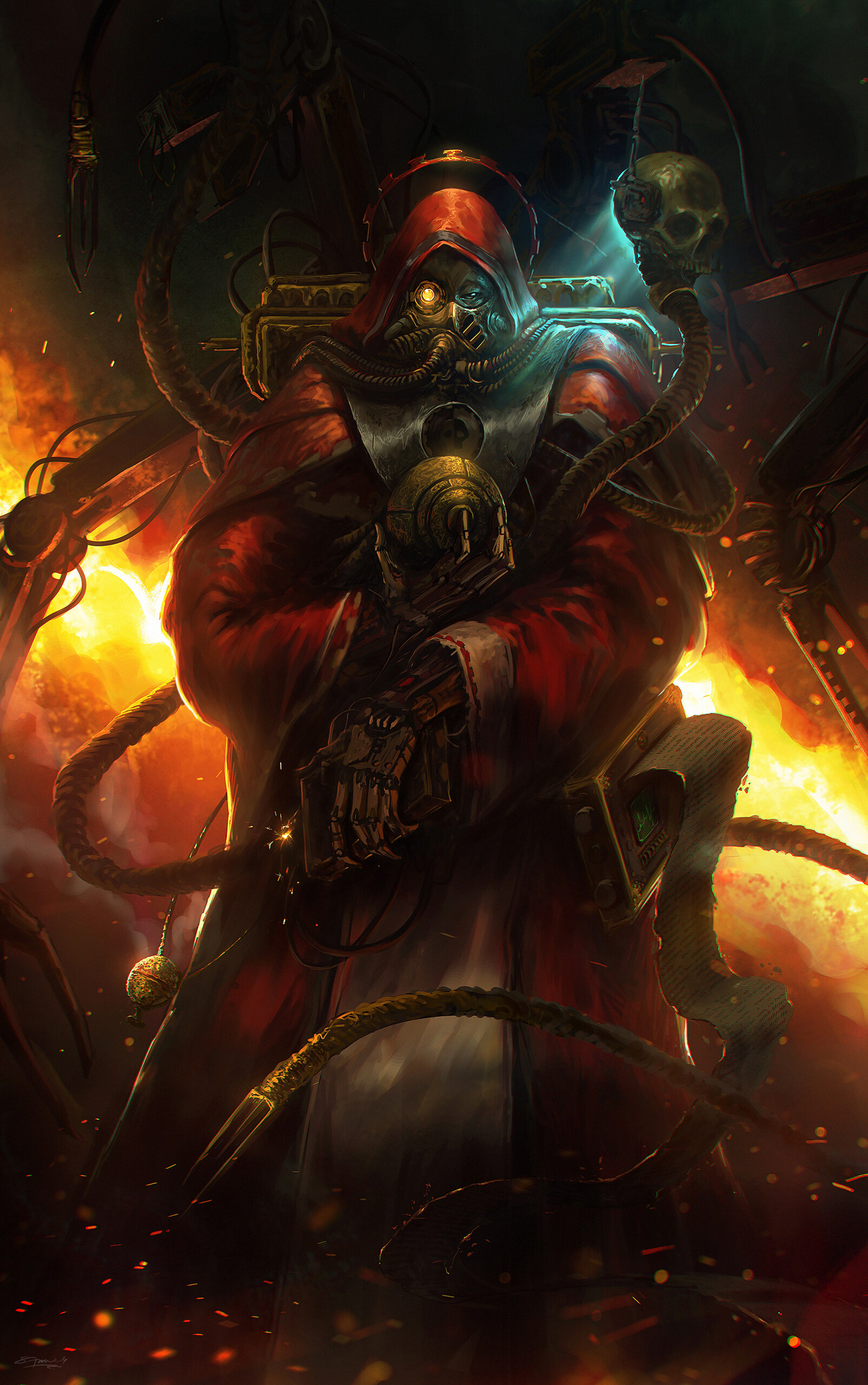 Extending your tail, the mechanism inside reforms into a shape that fits the input/output port. It stretches out of your tail like a scorpion’s stinger, perfectly fitting inside the port, giving you full access to the protected controls. As soon as you are in, you send a message to the cleaning staff to remove all of Vulfstahn’s mess, biologicals are so messy, you’ve never spilt your internals before. The next task is to scrub the footage of Vulfstahn. If you had time, you could cut him out of the tape, which would be a much more elegant solution, but would take far too long.Going through the files, you wipe all of them that could link Vulfstahn to Tyus’ death, let them guess and wonder while keeping your master out of mind. On the screens above, you spot the servants beginning their task to clean the surfaces of all evidence. The self-deleting message has already vanished from their commlinks, something they’d notice if they weren’t too busy with their tasks. And sadly, the robot has caught up with its masters, and confusion is evident on the humans’ faces. You need to go soon.You have maybe a minute, possibly two, before you get caught. The question is, what do you do in your remaining moments? Removing the files is one thing, totally wiping the drives clean is another. If they try to reconstitute it, there’s a chance that over time, with advanced machines, they can do so. Or you could leave a bug in the security centre, allowing you and your master to access many of the systems once reserved for the staff. It could be such a boon for Vulfstahn, knowing where everyone is at his whim or opening locked doors. Your processor reaches a rapid conclusion, enabled by the lightning-fast silicon neurons. >A Backdoor – Leave a bug in the security net, allowing you and Vulfstahn to access the system at will.>Full Wipe – Leave nothing remaining, shred the storage completely.