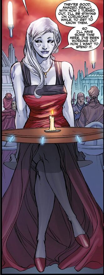 Man we are probably coming back with a serious Injury, frustrations about being a weak Sith in a corrupt and indulgent system and Seyra is going to love every minute of it.