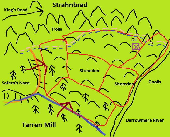 >>6389759Yeah I had a feeling it would be some orders or a map. >The ogres must have been planning another raid on your lands, but they bumped into Grom first. That is your leading theory.Doomhammer is right here to ask him what the ogre rune means. Even if its probably just a rallying point. Though maybe it could be the personal rune of a particular ogre leader or magi which is valuable info. Maybe it represents a season and day to be there to start raiding. Or maybe its a build order of something we can raid to destroy before its complete lol. Deny them a shop or defenses.>You are going to take this map with you. Your officers need to see it and make preparations.Eligius and Cyrus, officially at least, are out doing cartography. They only report to Alric so any messages won't necessarily go through military. Cyrus killed some kobolds picking this up and sent it back.Only two things really drawn on the map besides the rallying point, being the Silver Mine and Dawnholme. So I suppose the officers would be better off planning how to best defend both. Our patrols, the Merc camp patrols, the Stonemason army in Dawnholme, and our army. Stonedon and our allies. Our secret vassal green knights with Lady Imswit could be very handy since cavalry would be needed to quickly respond, good exp for them.