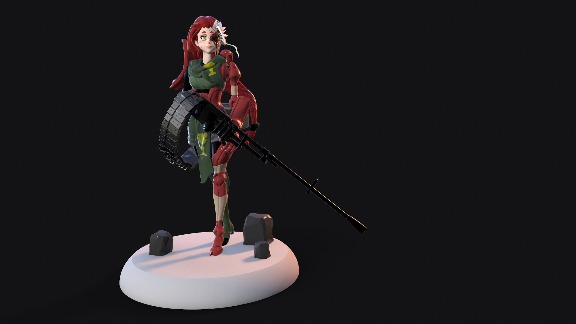 Rolled 10 + 4 (1d20 + 4)>>6373300Before we begin, a refresher on "Red"Half-scarred was putting it lightly. This wasn't your average burn victim - she's lost an entire limb and a half from it, and an eye on top of things. But that was all the distant past. Before being awoken kidnapped in a strange place. Before she joined TFV. Now, it's impossible to talk about "Red" without mention "Red" without talking about her weapon, "Caritas." It means Charity in Latin, and stands for a Gatling Laser. She was usually laden with several other weapons, as well.What was the endgame? Who the Hell knows. Right now though, it's about managing this headache. Was "Godmother" still in the picture? So many racing thoughts..