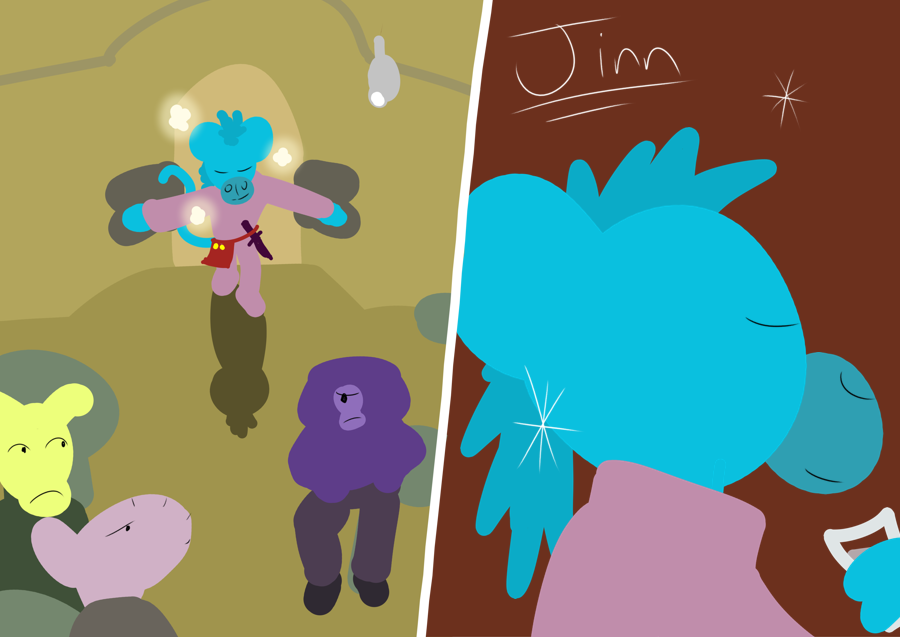 Dole stands watch along with you at the top of the lookout tower. He's junior security; so the rest of the base dumped him on you since one armed security is required to be at base at all times. Waiting for everyone to return from a routine patrol; the Casliaan hasn't taken his eyes off the horizon. It irritates you that he's taking it so serious. You outrank him in the Accord's hierarchy anyway. Casliaans tend to be of lower rank regardless of role; but he's just dumb muscle with a gun.