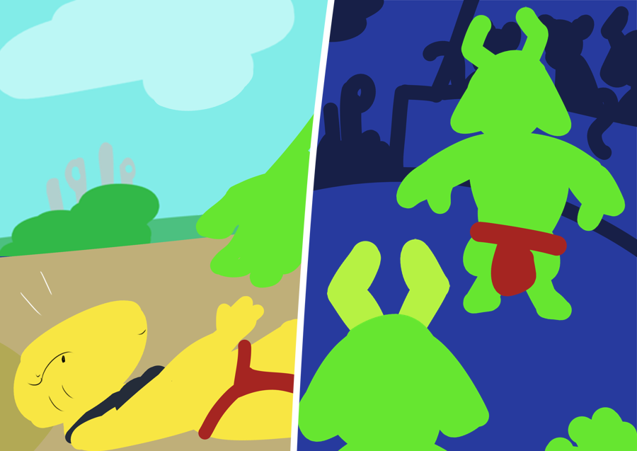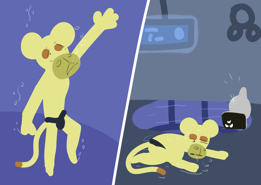 He overtakes Blue, then Orange and Red come up close behind. They close their armor plates together and squeeze the water out of the interim space; the diving section of the race is next. You know your racer is going to reach the base of the river first with his own body's divebell technique. Unless...