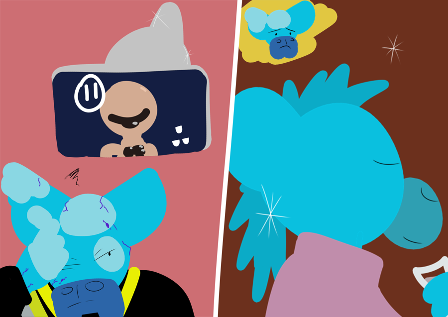 ”Grahh! RETARDED- Wait... Third... Green first, red second, race to dive... Hold on! Isn't the race from three days ago? Where's the live feed!?”